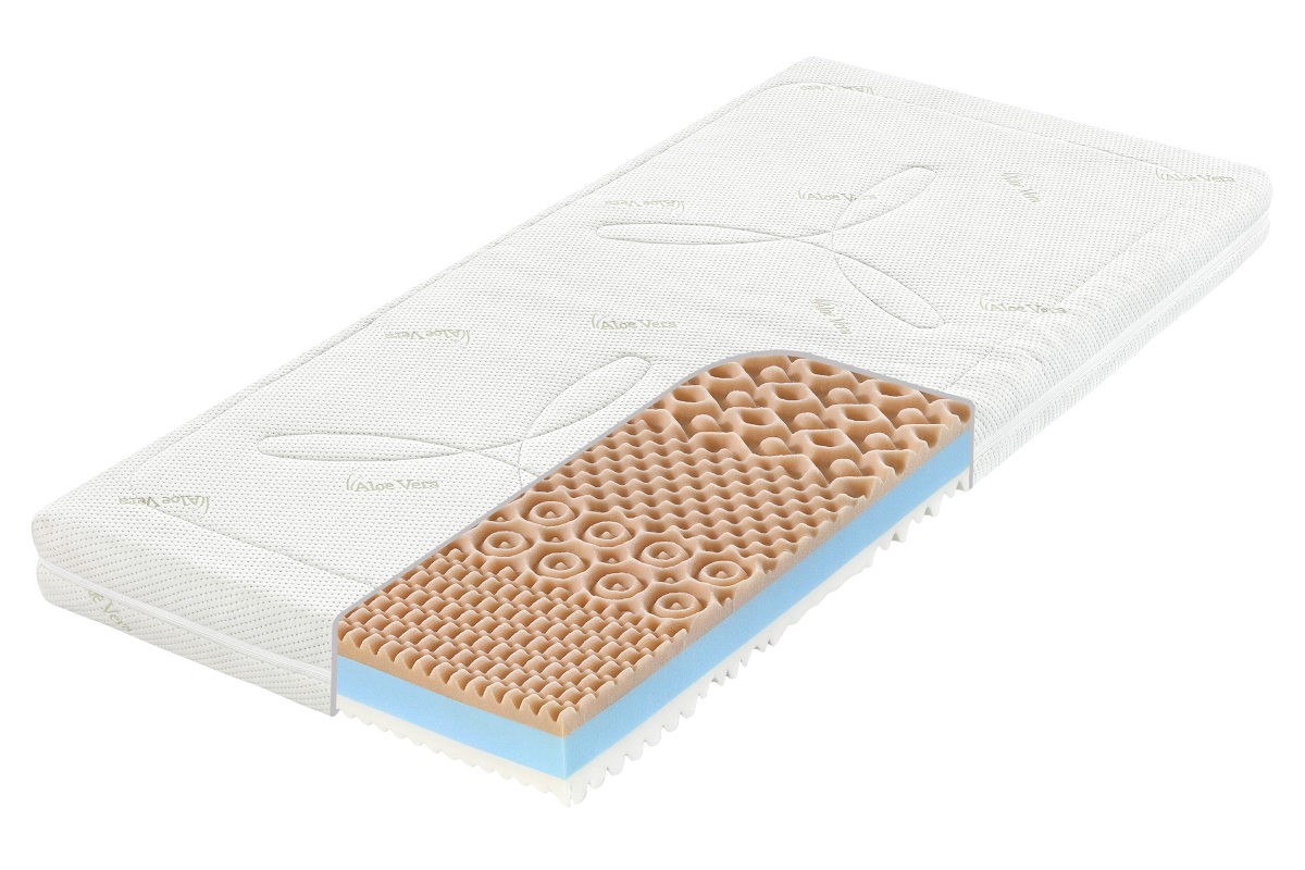 Luksusowy pokrowiec Aloe Vera zawiera mikrokapsułki z naturalnym wyciągiem z aloesu. Podczas snu kapsułki uwalniają aromat, który jednocześnie zapobiega namnażaniu się mikroorganizmów, a tym samym powstawaniu ewentualnych alergii. Pokrowiec można łatwo zdjąć z materaca, dodatkowo jest podzielony na dwie oddzielne części, co bardzo ułatwia pranie.