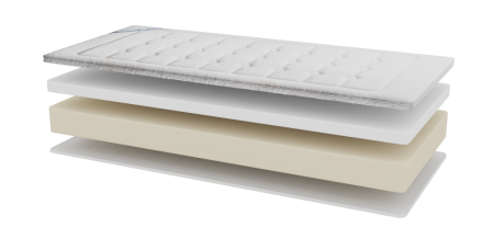 Wysokiej jakości podłoże z perforowanej piany pamięciowej połączone z pianą wysokoelastyczną rozkłada równomiernie nacisk na całej długości materaca.