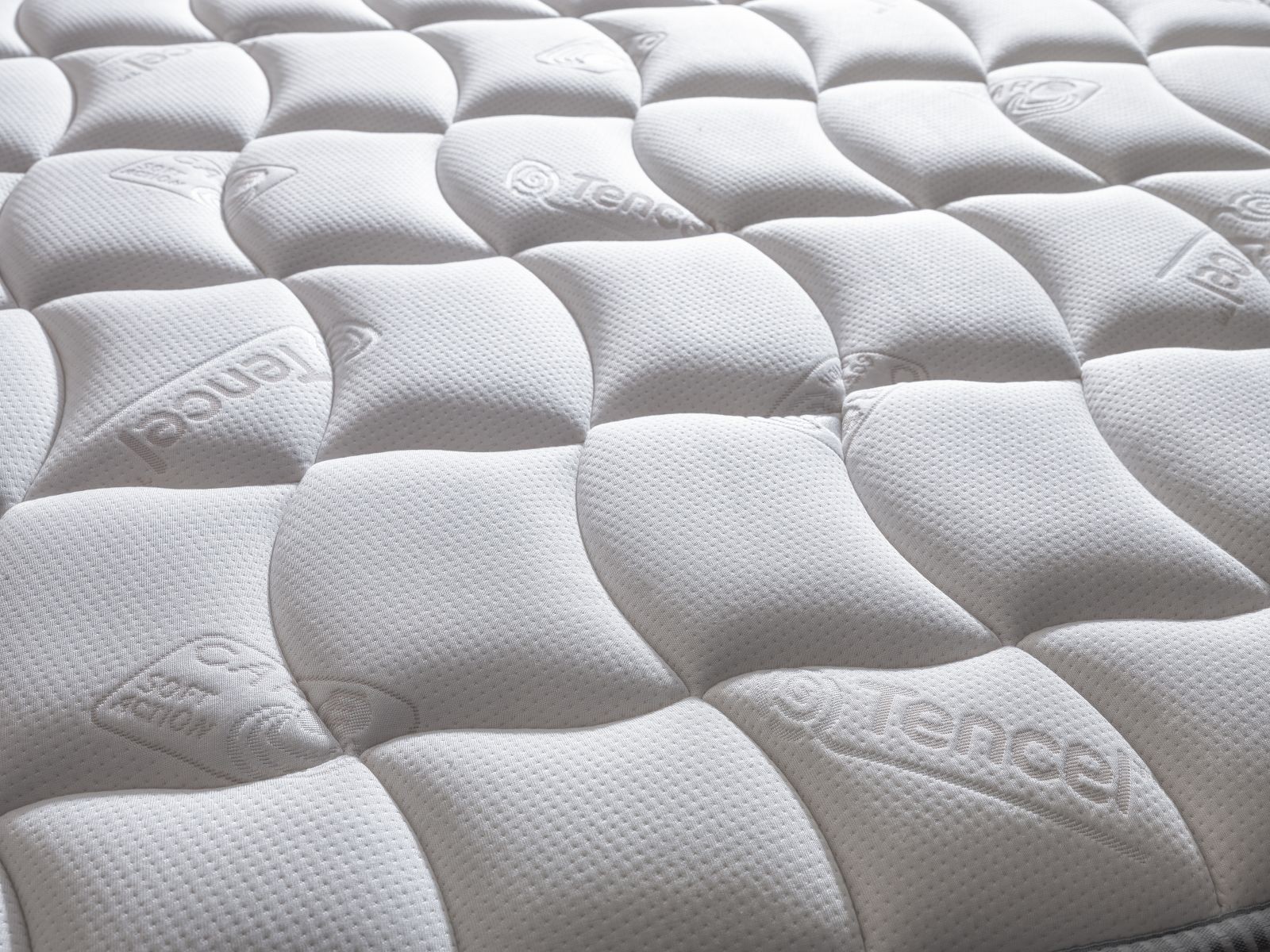 Materac wyróżnia się wieloma korzyściami. Jedną z nich jest doskonale przemyślana kombinacja pian w pokrowcu. Znajdziesz w nim pianę ClimaFresh®, która doskonale reguluje temperaturę, zapobiegając nadmiernemu przegrzewaniu się, oraz pianę Extra Soft, która nadaje materacowi przyjemnie miękkie wrażenie w czasie leżenie. Dodatkowo pokrowiec jest zdejmowany, a w jego składzie znajdują się naturalne włókna Tencel, absorbujące wilgoć i zapewniające świeży mikroklimat podczas snu.