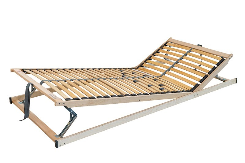 Ręcznie regulowany stelaż idealny do wygodnego czytania i odpoczynku. Łatwa regulacja pozycji za pomocą tekstylnego uchwytu jest również odpowiednia w przypadku problemów zdrowotnych, zmęczenia i bólu nóg. Elastyczne lamele, umieszczone parami w gumowych uchwytach, są rozmieszczone w 3 anatomicznych strefach. Taśma środkowa poprawia stabilność i nośność stelaża, a przesuwane wzmocnienia służą do indywidualnej regulacji twardości w okolicy lędźwiowej.