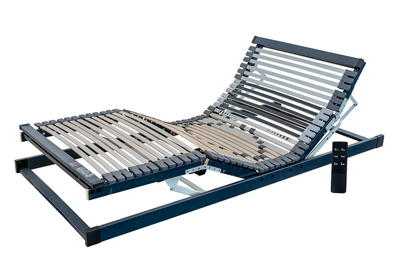 Odpowiedni nawet dla najbardziej wymagających klientów stelaż Klinmam Lux Motor Wireless jest wyposażony w bezprzewodowy pilot, który pozwala dopasować łóżko idealnie pod Ciebie. Pilot ułatwia ustawienie stelaża dokładnie tak, jak chcesz. Dzięki dużej liczbie lameli, stelaż idealnie dopasowuje się do każdej pozycji spania, a jednocześnie równomiernie rozkłada nacisk na całą powierzchnię łóżka. Potrójne gumowe uchwyty podzielono w sumie na 7 anatomicznych stref. Do indywidualnej regulacji twardości służą specjalne przesuwane wzmocnienia w okolicy lędźwiowej stelaża. Specjalna technologia podwójnego sprężynowania zastosowana w obszarze ramion sprawia, że stelaż jest odpowiedni do spania na boku (lamele zapadają się głębiej przez nacisk ramienia, które bardziej się zagłębia, przez co kręgosłup zachowuje swój naturalny kształt). Aby zapobiec deformacji brzegów materaca, jest on wyposażony w dodatkowe listwy. Cała powierzchnia stelaża pokryta jest folią, co znacznie zmniejsza ryzyko rozwoju bakterii i pleśni, ułatwia konserwację stelaża i chroni pokrowiec przed ewentualnymi uszkodzeniami. Stelaż Klinmam Lux Motor Flat wyposażony jest w bezprzewodowy pilot.