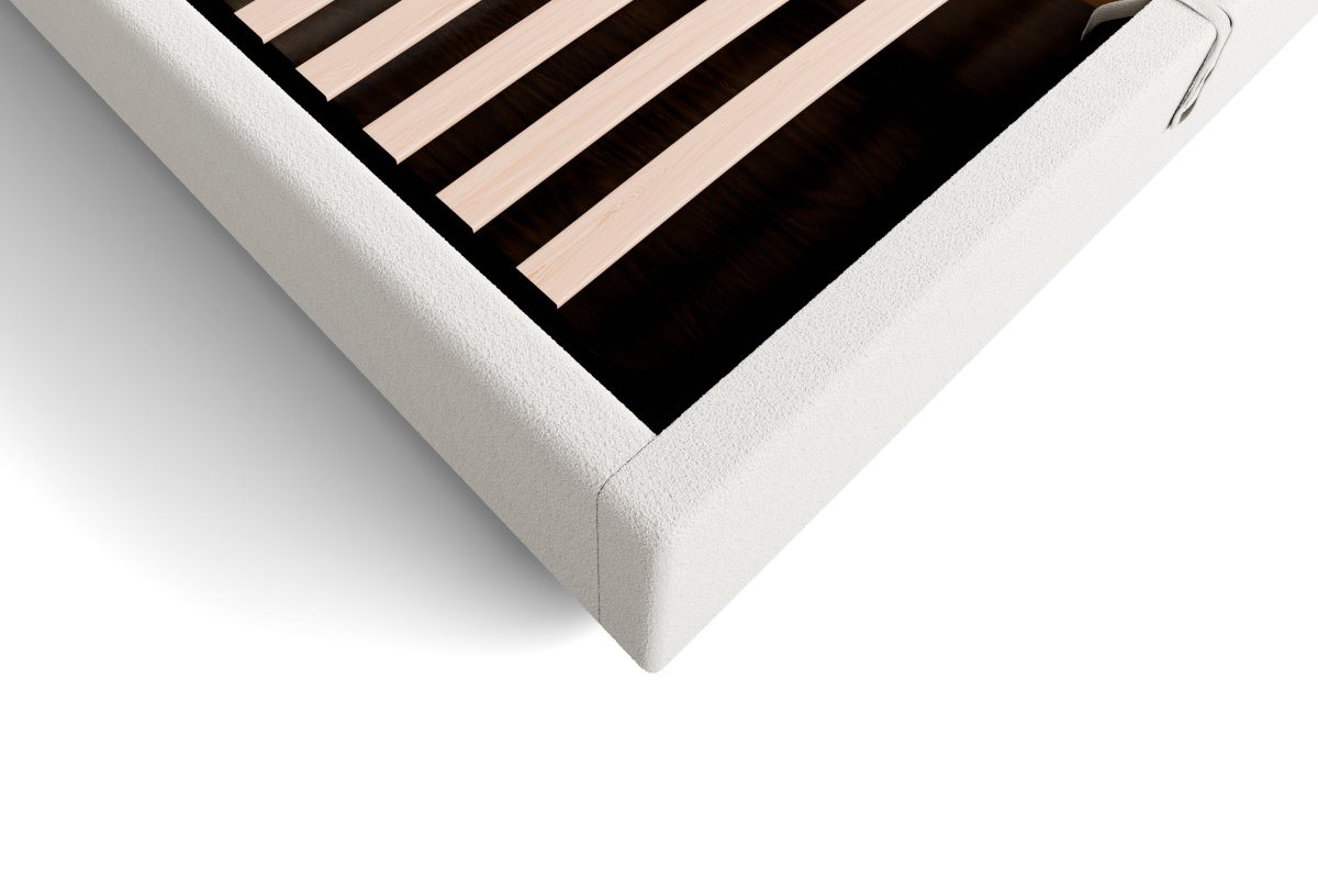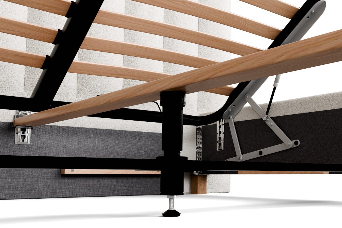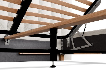 Podstawa ramy FRAME STORAGE zawiera schowek, w którym można przechowywać wszystko, co potrzebujesz mieć pod ręką. Wykonana jest z wysokiej jakości płyt MDF, które są bardzo wytrzymałe, a dla zwiększenia nośności i stabilności w podstawie umieszczono specjalne metalowe wzmocnienia. Ten typ podstawy nie zawiera stelaża łóżka, dzięki czemu jest odpowiedni dla klientów, którzy preferują na przykład stelaże regulowane.