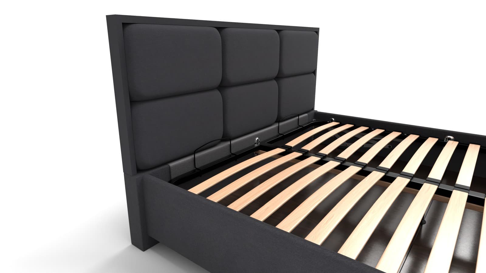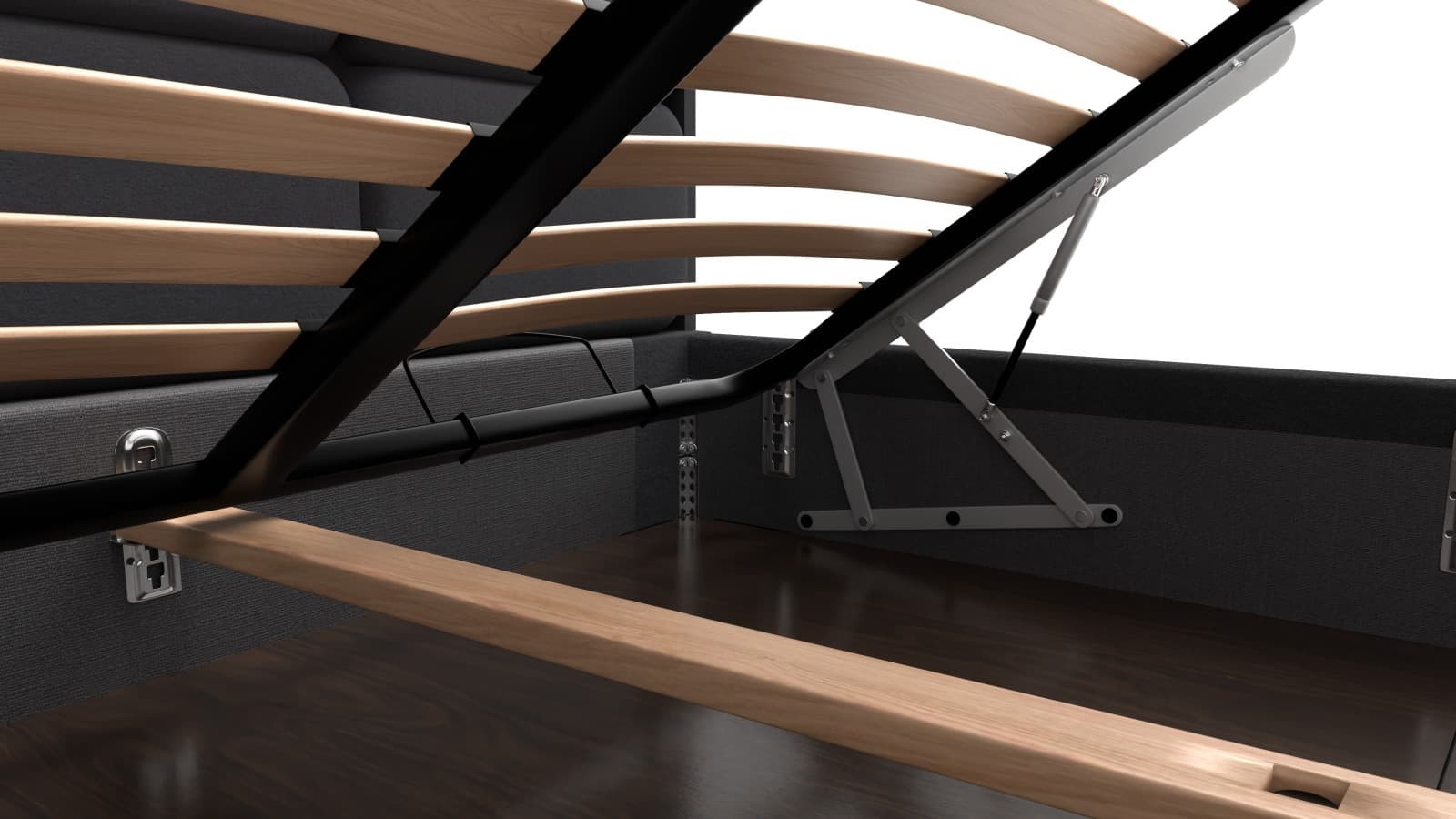 Podstawa FRAME LIFT to kompleksowe rozwiązanie dla Twojej sypialni, rama zawiera stelaż do łóżka typu LIFT, który umożliwia łatwy dostęp do przestrzeni do przechowywania. Płyty MDF są umieszczone na metalowych wzmocnieniach, które zapewniają stabilność i trwałość łóżka. Stelaż mocowany jest do podstawy za pomocą podnośników, które nie wydają żadnych nieprzyjemnych dźwięków podczas użytkowania i są bardzo wygodne w użyciu.