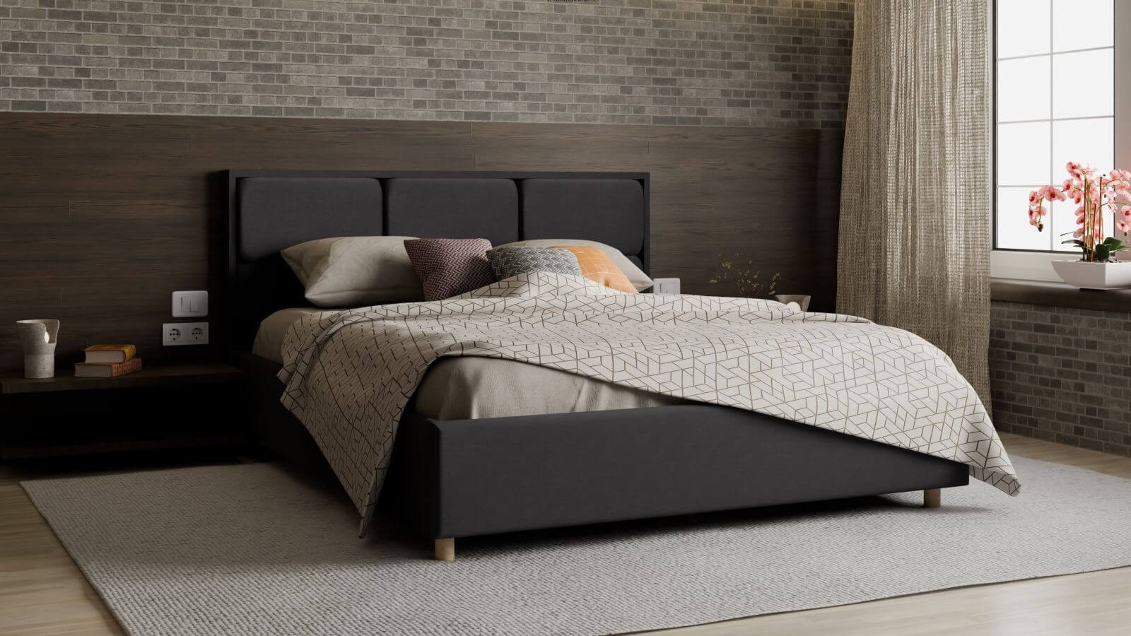 Łóżko tapicerowane Aurora Frame Standard, Wooden Black, Paris Chocolate, 180x200 cm