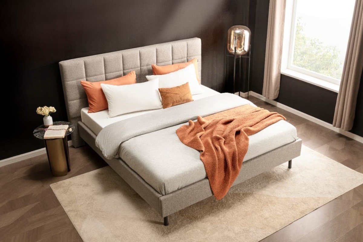 Łóżko Borneo to idealne połączenie funkcjonalności i elegancji, które doskonale sprawdzi się w każdej nowoczesnej sypialni. Charakterystyczne, tapicerowane wezgłowie ozdobione kwadratowymi przeszyciami o wysokości 117 cm przyciąga wzrok i stanowi efektowny, centralny element wnętrza.
