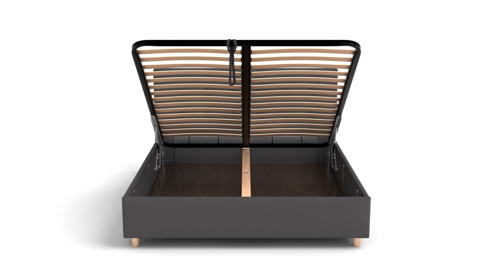 Podstawa ramy FRAME STORAGE zawiera schowek, w którym można przechowywać wszystko, co potrzebujesz mieć pod ręką. Wykonana jest z wysokiej jakości płyt MDF, które są bardzo wytrzymałe, a dla zwiększenia nośności i stabilności w podstawie umieszczono specjalne metalowe wzmocnienia. Ten typ podstawy nie zawiera stelaża łóżka, dzięki czemu jest odpowiedni dla klientów, którzy preferują na przykład stelaże regulowane.