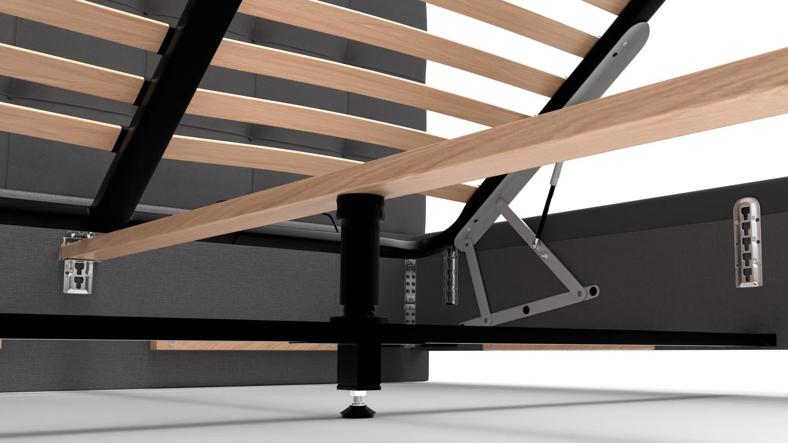 Podstawa FRAME LIFT to kompleksowe rozwiązanie dla Twojej sypialni, rama zawiera stelaż do łóżka typu LIFT, który umożliwia łatwy dostęp do przestrzeni do przechowywania. Płyty MDF są umieszczone na metalowych wzmocnieniach, które zapewniają stabilność i trwałość łóżka. Stelaż mocowany jest do podstawy za pomocą podnośników, które nie wydają żadnych nieprzyjemnych dźwięków podczas użytkowania i są bardzo wygodne w użyciu.