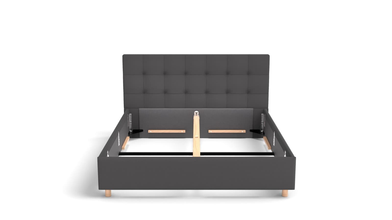 Podstawa ramy FRAME STORAGE zawiera schowek, w którym można przechowywać wszystko, co potrzebujesz mieć pod ręką. Wykonana jest z wysokiej jakości płyt MDF, które są bardzo wytrzymałe, a dla zwiększenia nośności i stabilności w podstawie umieszczono specjalne metalowe wzmocnienia. Ten typ podstawy nie zawiera stelaża łóżka, dzięki czemu jest odpowiedni dla klientów, którzy preferują na przykład stelaże regulowane.