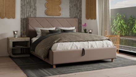Łóżko tapicerowane Madison Frame Lift, Wooden Oak, Paris Khaki, 160x200 cm