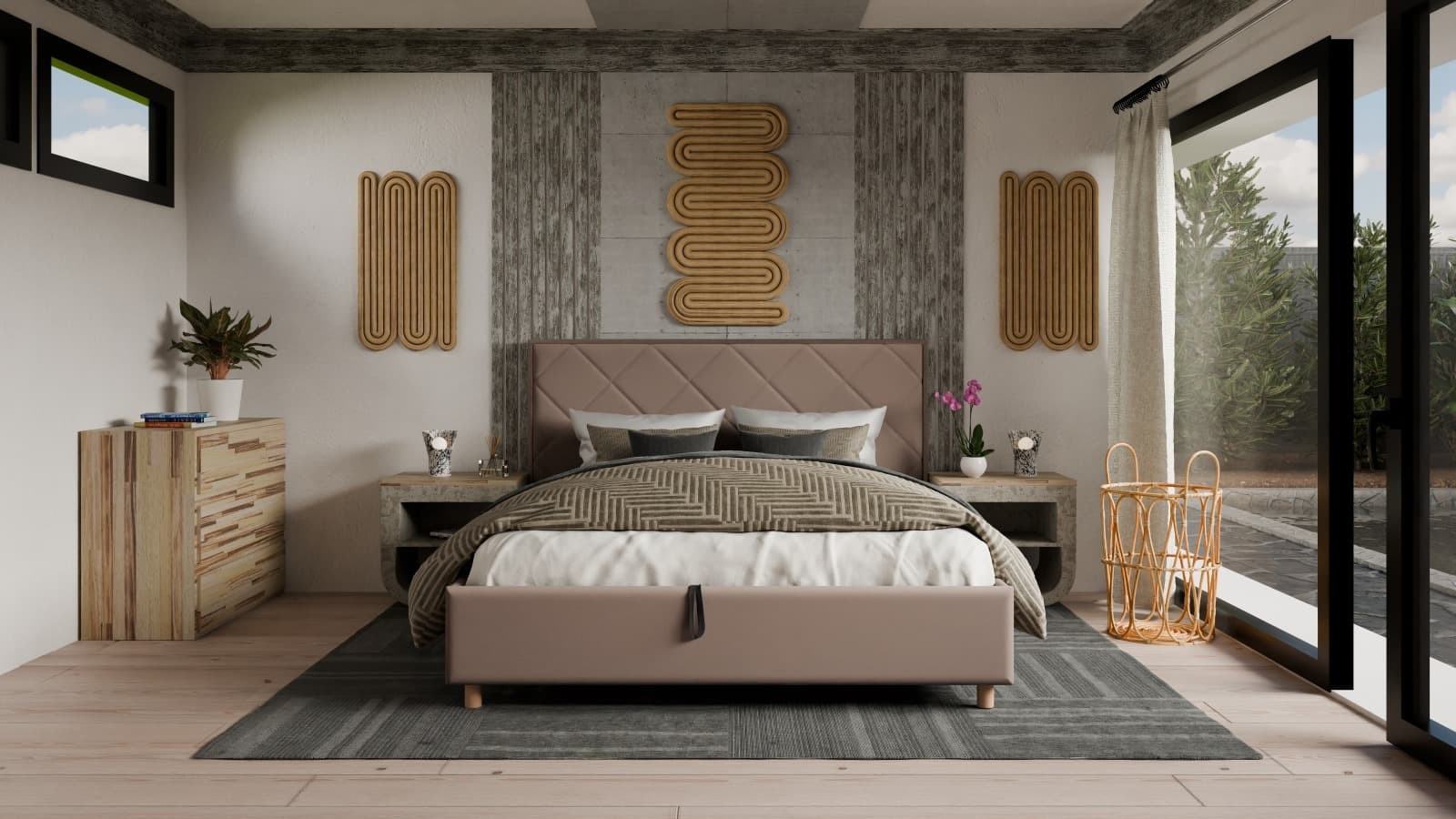 Eleganckie łóżko z geometrycznymi przeszyciami