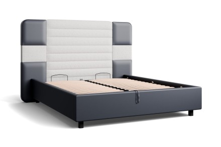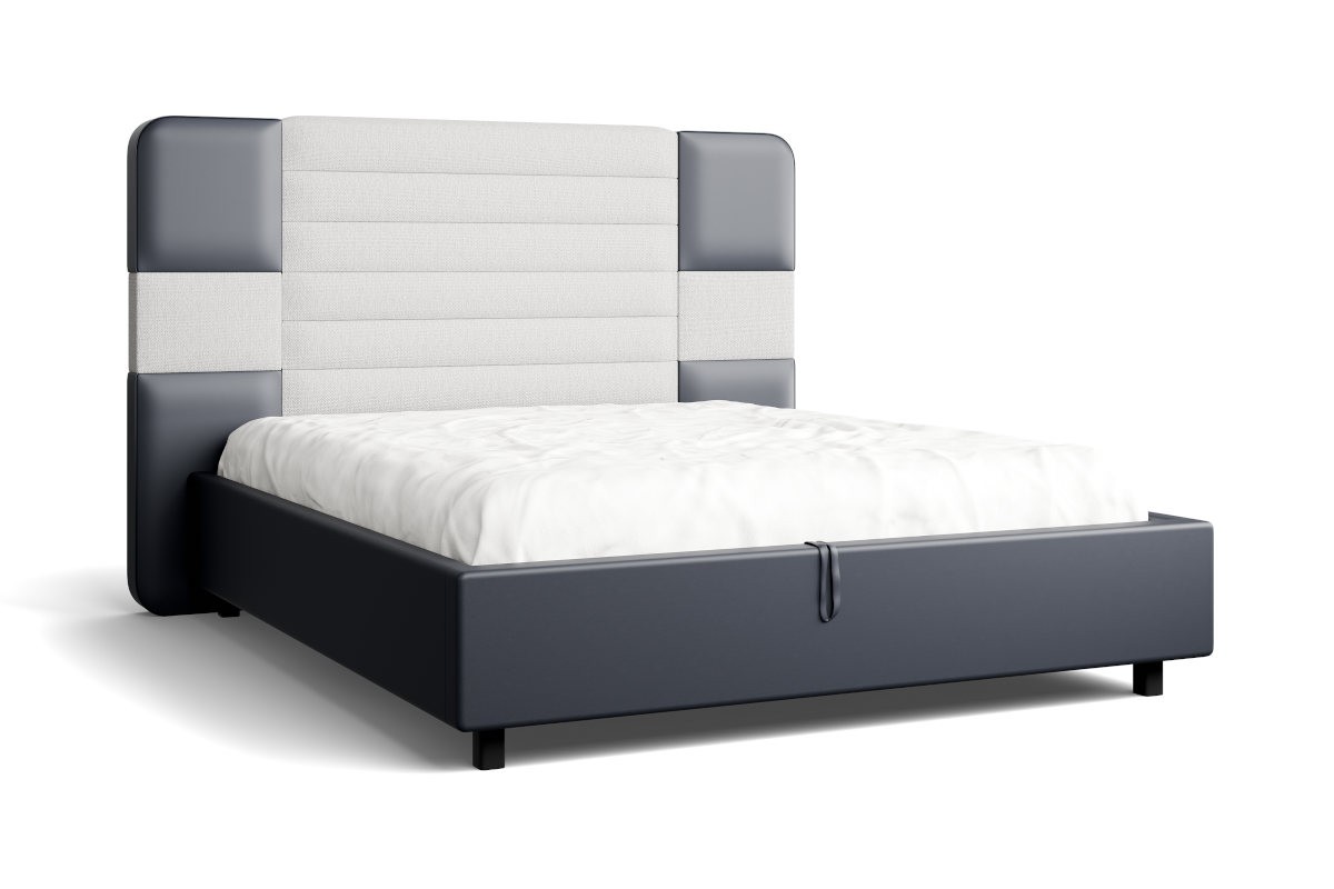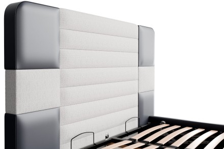 Wezgłowie modelu Majestic przyciąga wzrok od pierwszego spojrzenia. Zastosowanie dwóch kontrastujących barw oraz geometrycznych form nadaje mu wyrazistego, luksusowego charakteru. To właśnie ono podkreśla nowoczesny styl całego mebla.