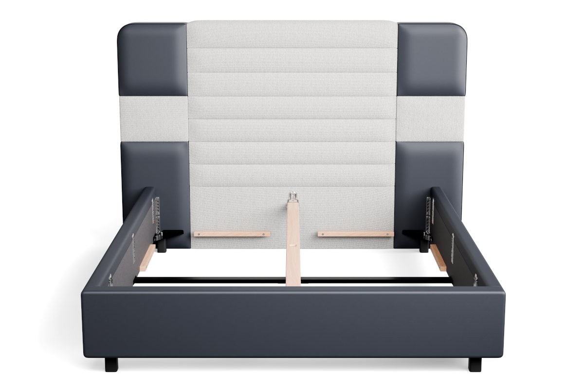 Wezgłowie modelu Majestic przyciąga wzrok od pierwszego spojrzenia. Zastosowanie dwóch kontrastujących barw oraz geometrycznych form nadaje mu wyrazistego, luksusowego charakteru. To właśnie ono podkreśla nowoczesny styl całego mebla.