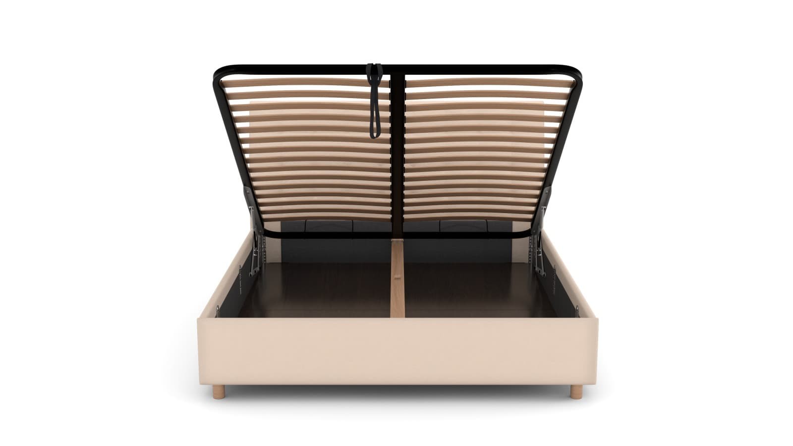 Podstawa ramy FRAME STORAGE zawiera schowek, w którym można przechowywać wszystko, co potrzebujesz mieć pod ręką. Wykonana jest z wysokiej jakości płyt MDF, które są bardzo wytrzymałe, a dla zwiększenia nośności i stabilności w podstawie umieszczono specjalne metalowe wzmocnienia. Ten typ podstawy nie zawiera stelaża łóżka, dzięki czemu jest odpowiedni dla klientów, którzy preferują na przykład stelaże regulowane.