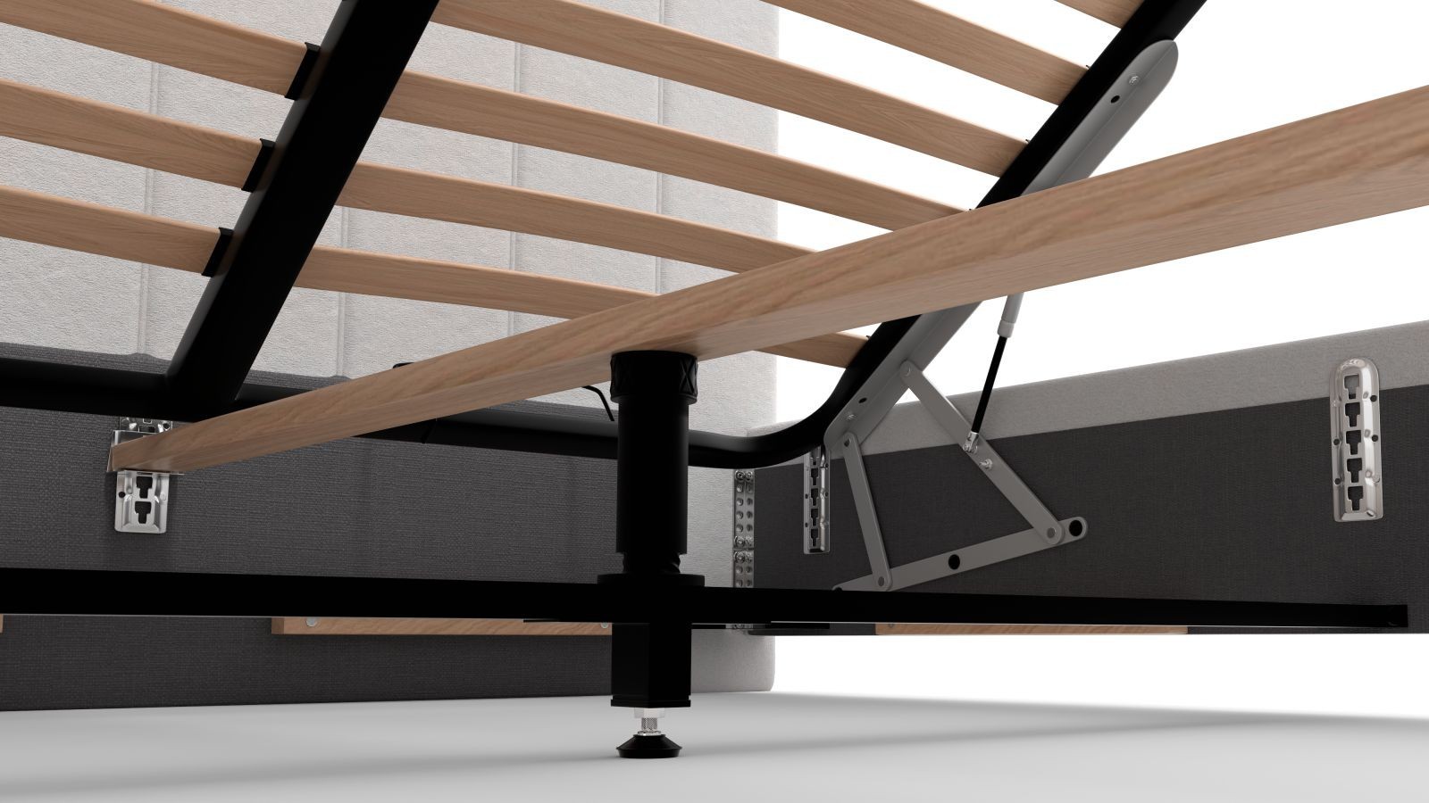 Podstawa FRAME LIFT to kompleksowe rozwiązanie dla Twojej sypialni, rama zawiera stelaż do łóżka typu LIFT, który umożliwia łatwy dostęp do przestrzeni do przechowywania. Płyty MDF są umieszczone na metalowych wzmocnieniach, które zapewniają stabilność i trwałość łóżka. Stelaż mocowany jest do podstawy za pomocą podnośników, które nie wydają żadnych nieprzyjemnych dźwięków podczas użytkowania i są bardzo wygodne w użyciu.