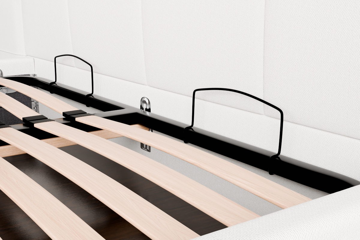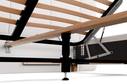 Podstawa ramy FRAME STORAGE zawiera schowek, w którym można przechowywać wszystko, co potrzebujesz mieć pod ręką. Wykonana jest z wysokiej jakości płyt MDF, które są bardzo wytrzymałe, a dla zwiększenia nośności i stabilności w podstawie umieszczono specjalne metalowe wzmocnienia. Ten typ podstawy nie zawiera stelaża łóżka, dzięki czemu jest odpowiedni dla klientów, którzy preferują na przykład stelaże regulowane.