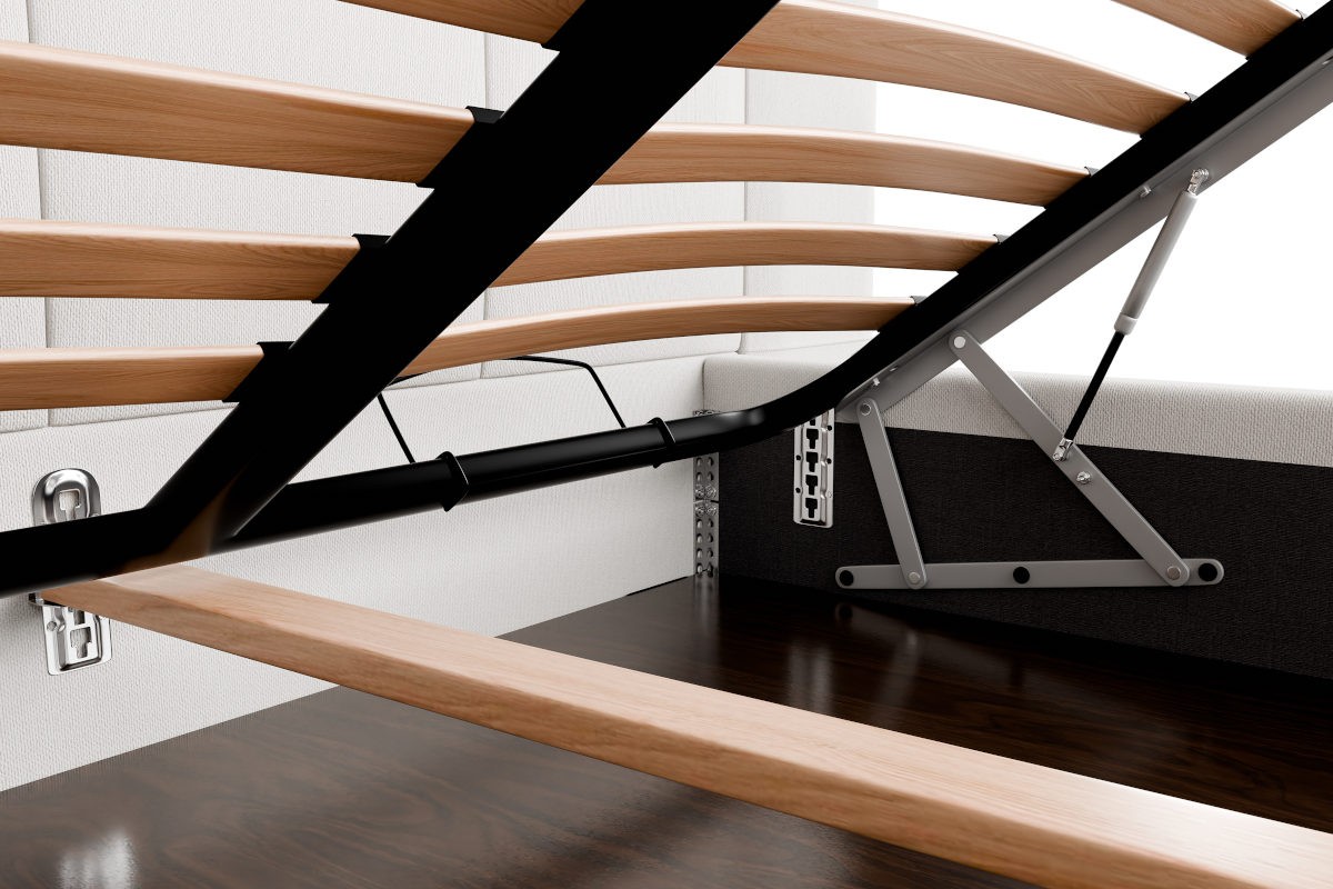 Podstawa FRAME LIFT to kompleksowe rozwiązanie dla Twojej sypialni, rama zawiera stelaż do łóżka typu LIFT, który umożliwia łatwy dostęp do przestrzeni do przechowywania. Płyty MDF są umieszczone na metalowych wzmocnieniach, które zapewniają stabilność i trwałość łóżka. Stelaż mocowany jest do podstawy za pomocą podnośników, które nie wydają żadnych nieprzyjemnych dźwięków podczas użytkowania i są bardzo wygodne w użyciu.
