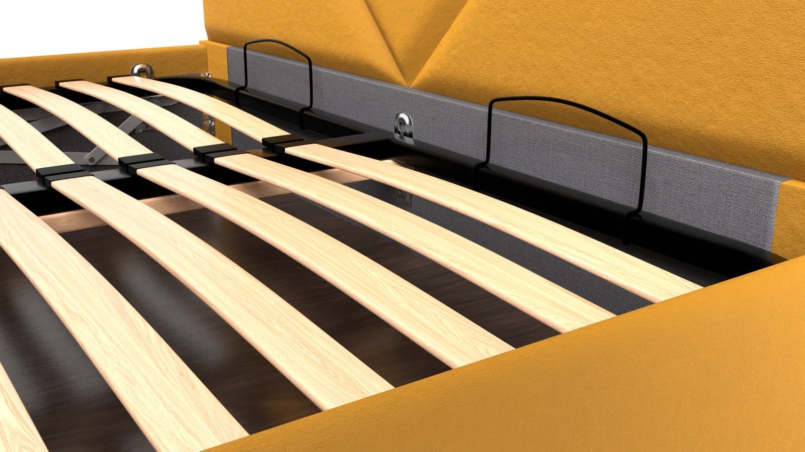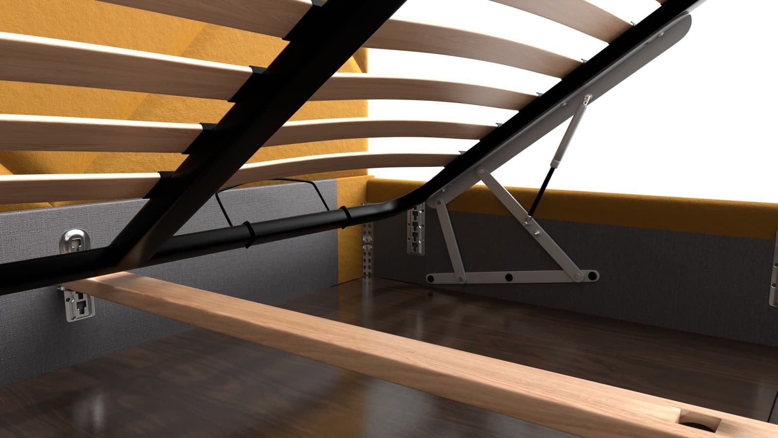 Podstawa FRAME LIFT to kompleksowe rozwiązanie dla Twojej sypialni, rama zawiera stelaż do łóżka typu LIFT, który umożliwia łatwy dostęp do przestrzeni do przechowywania. Płyty MDF są umieszczone na metalowych wzmocnieniach, które zapewniają stabilność i trwałość łóżka. Stelaż mocowany jest do podstawy za pomocą podnośników, które nie wydają żadnych nieprzyjemnych dźwięków podczas użytkowania i są bardzo wygodne w użyciu.