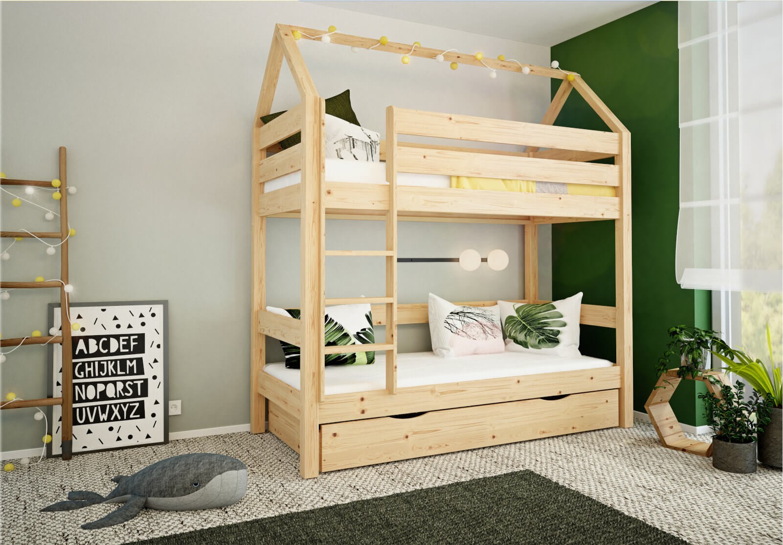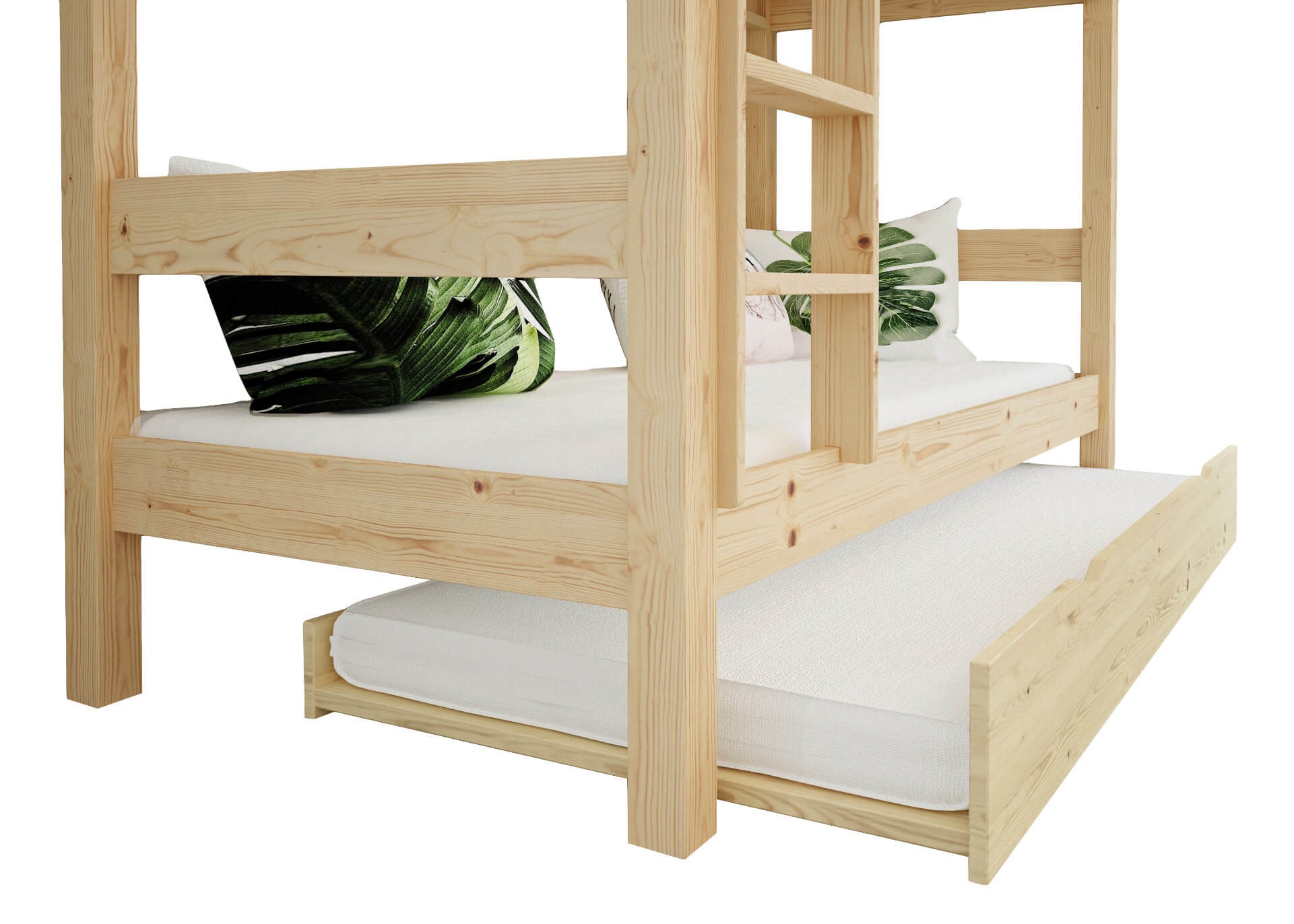 Aaron – łóżko sosnowe z litego drewna, wykończenie podkreślające naturalny wzór, z dostawką, 90x200 cm