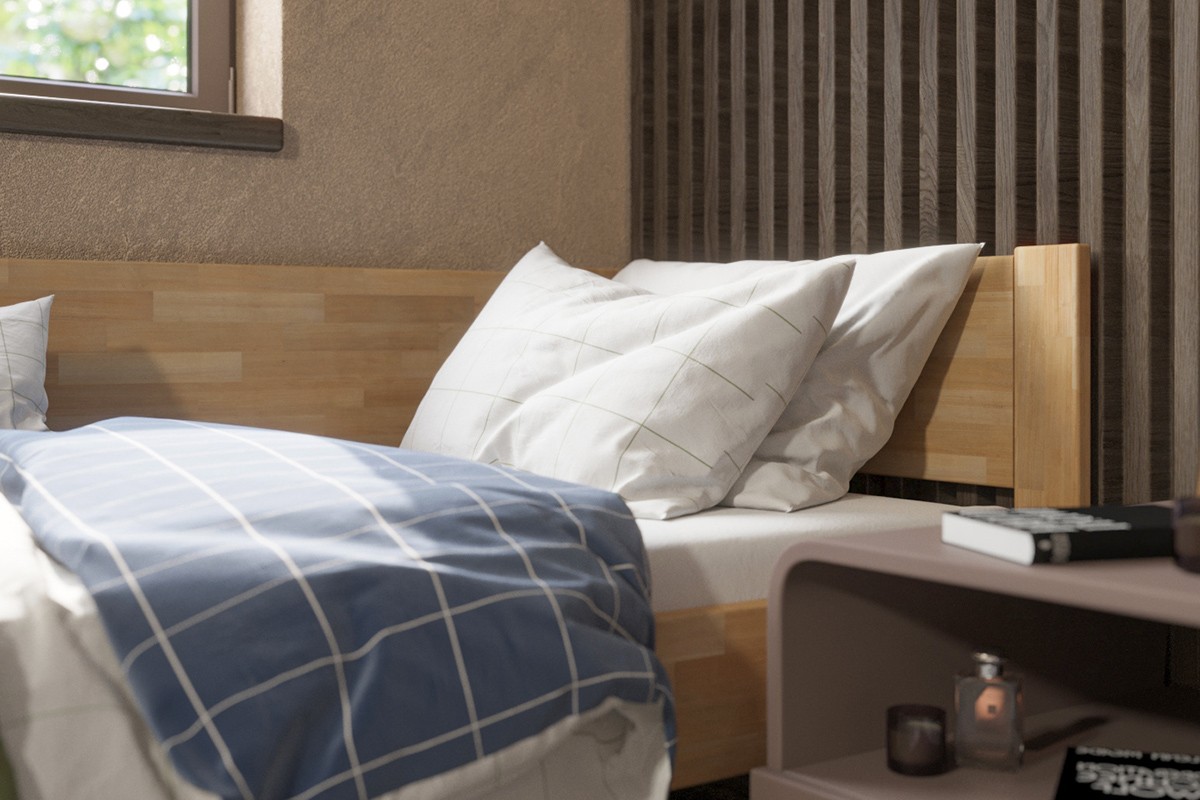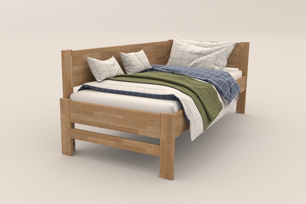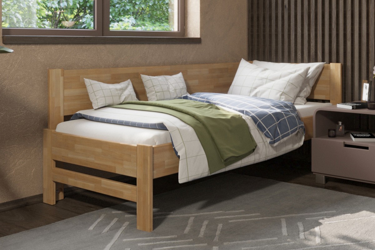 Pojedyncze narożne drewniane łóżko Amelia, lewy róg, wersja BK1, 120x200 cm