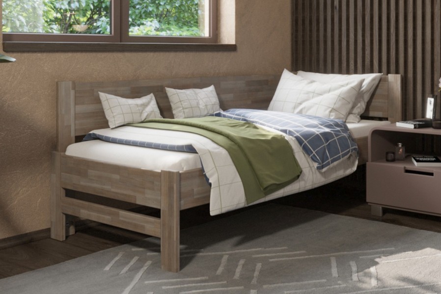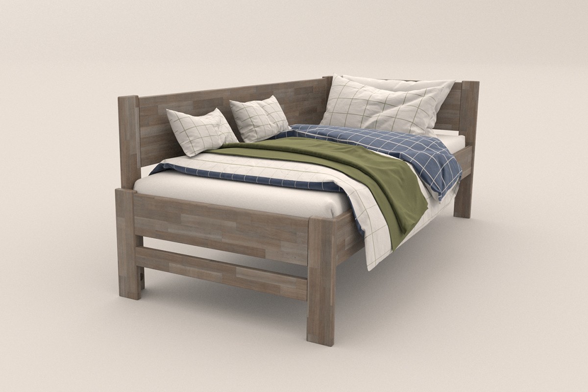 Pojedyncze narożne drewniane łóżko Amelia, lewy róg, wersja BO105, 120x200 cm