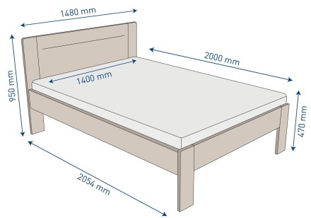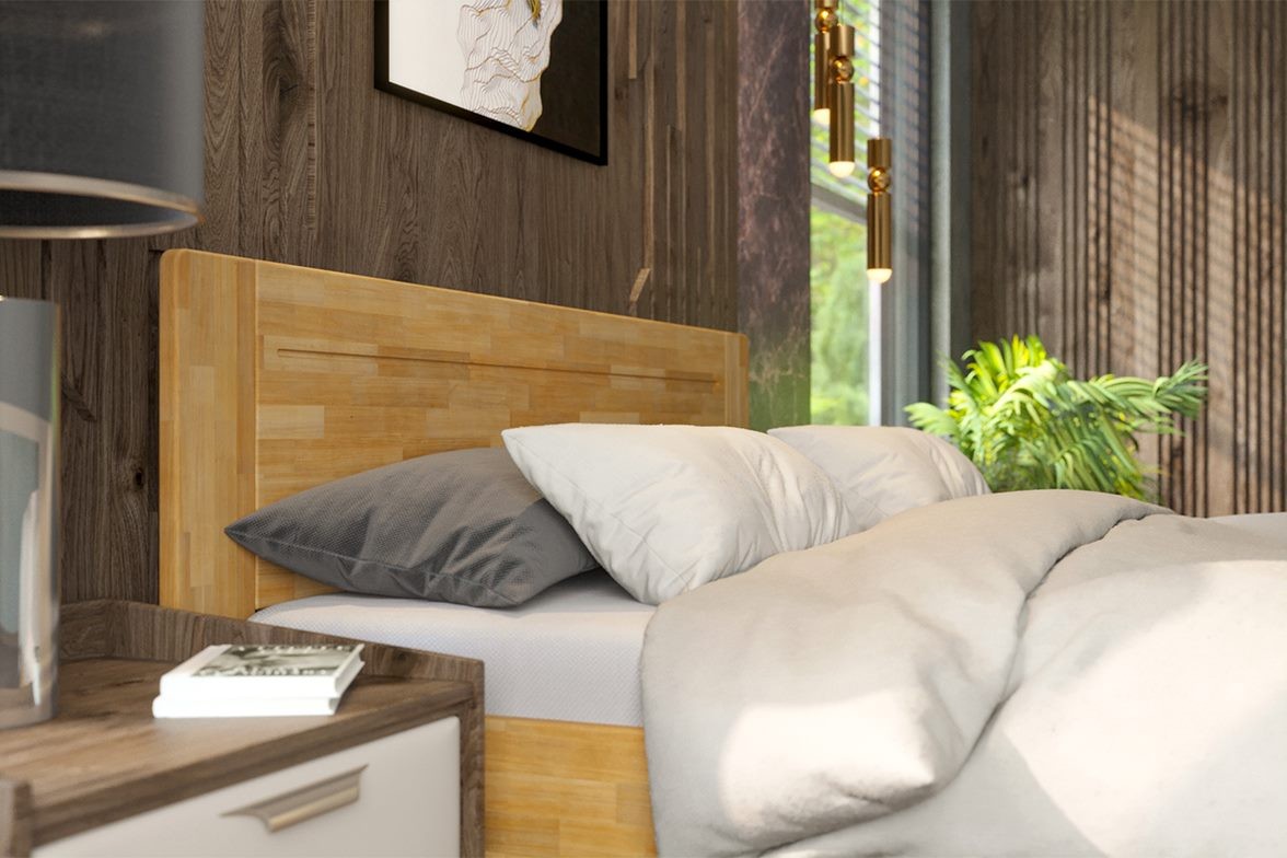 Łóżko z litego drewna Amien, buk, wersja BO101, 140x200 cm