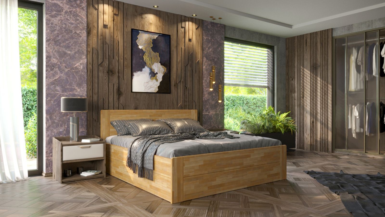 Łóżko z litego drewna Amien, wersja box, buk, BO101, 180x200 cm