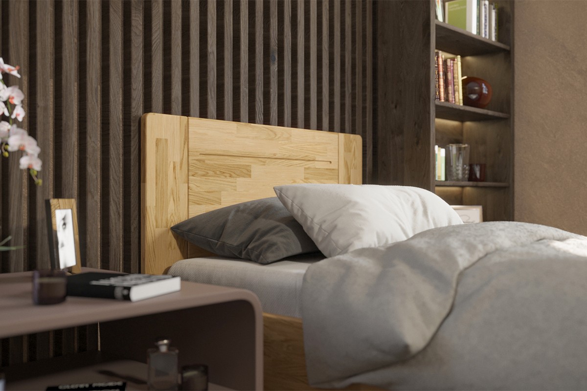 Pojedyncze łóżko z litego drewna Amien, dąb, D1, 120x200 cm