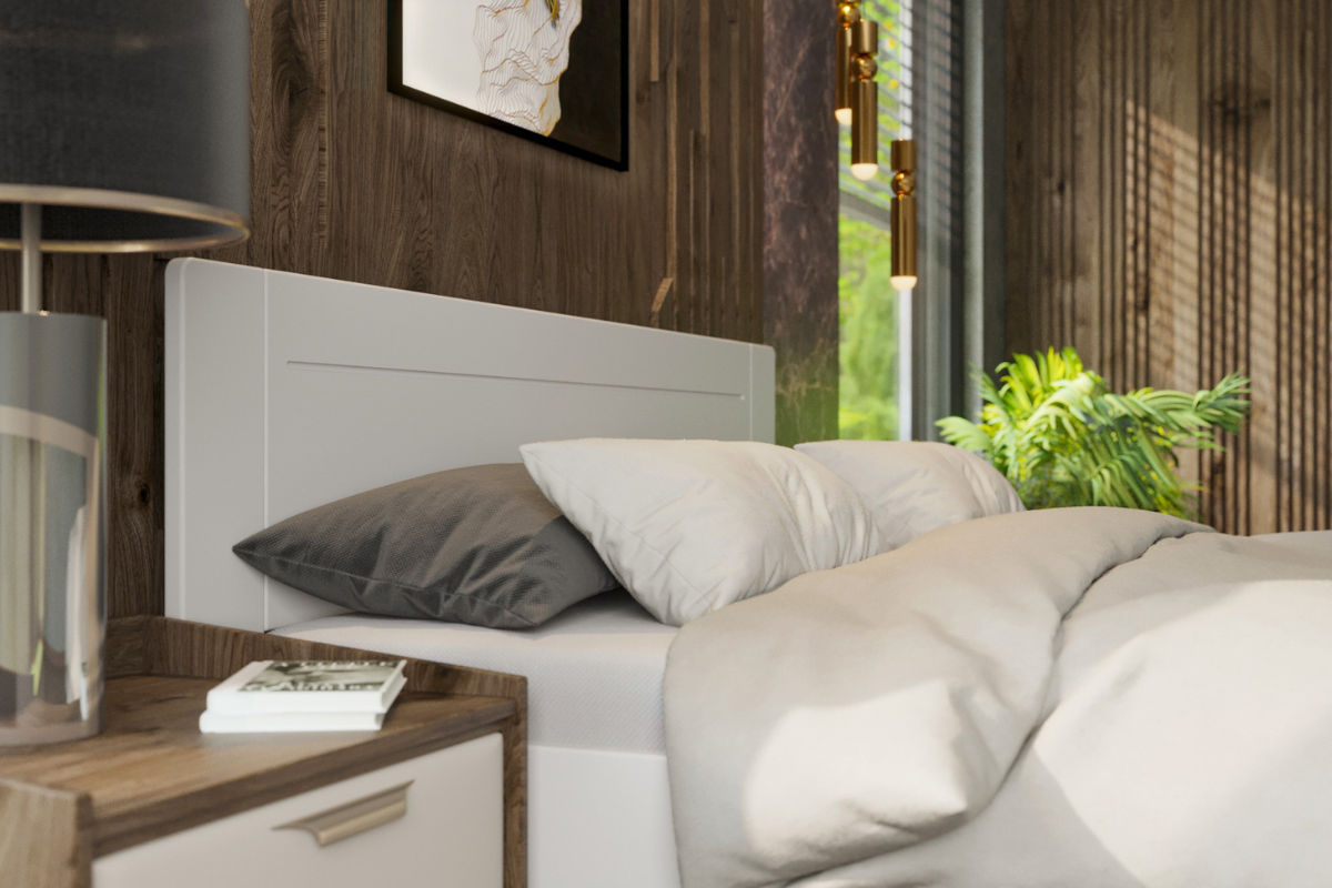 Zharmonizowanie wezgłowia i frontu, dzięki czemu łóżko jest eleganckie i delikatne