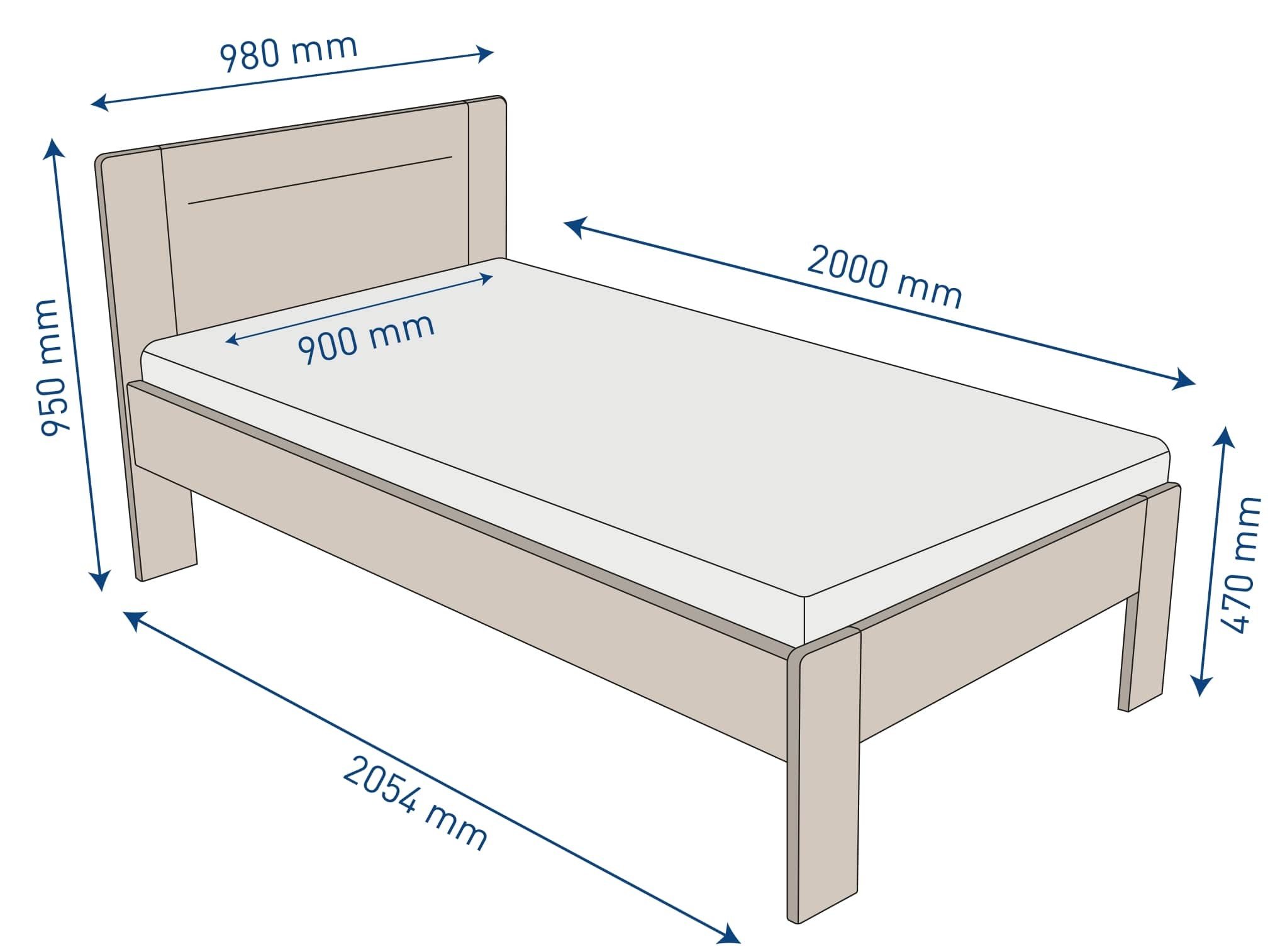 Pojedyncze łóżko z litego drewna Amien, dąb, D1, 90x200 cm