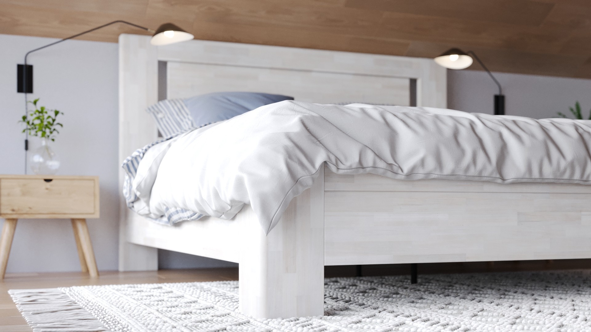 Łóżko z litego drewna Aspen, 90x200 cm, Buk, BO 102, Bez modyfikacji