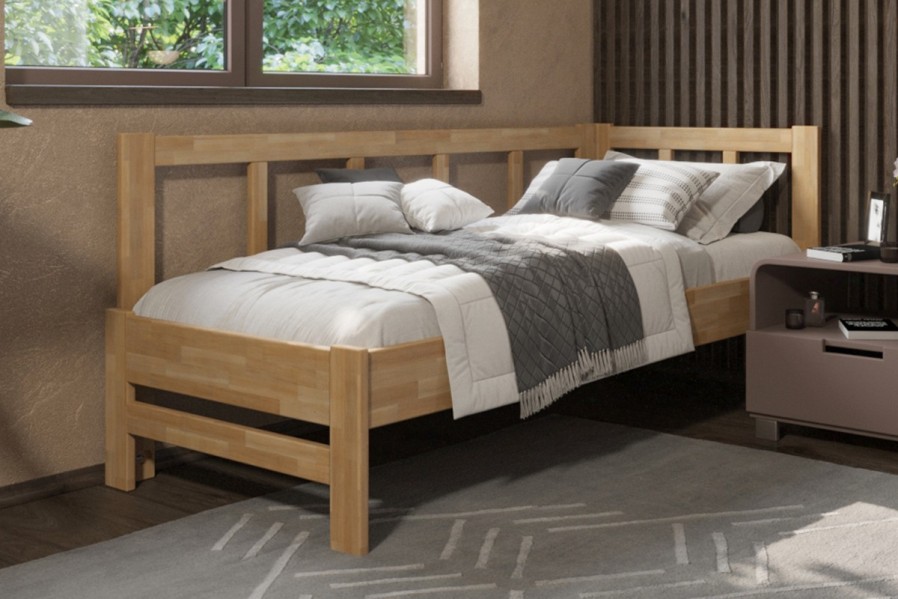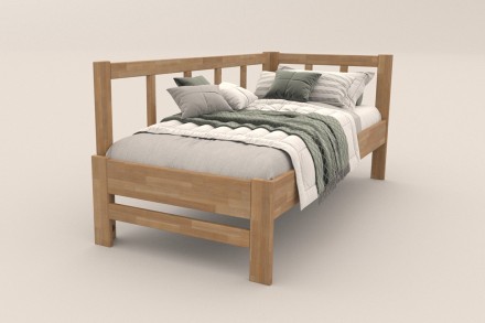 Pojedyncze narożne drewniane łóżko Bety, lewy róg, wersja BK1, 120x200 cm
