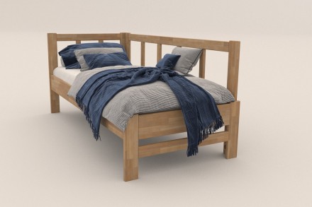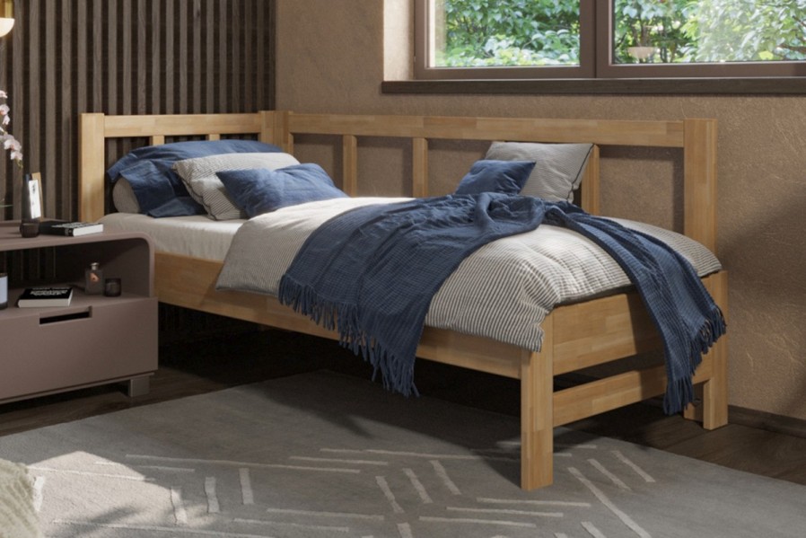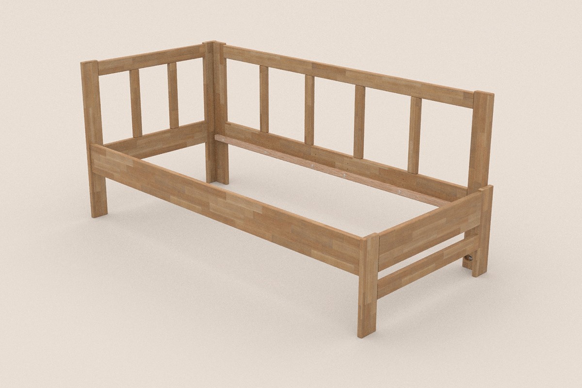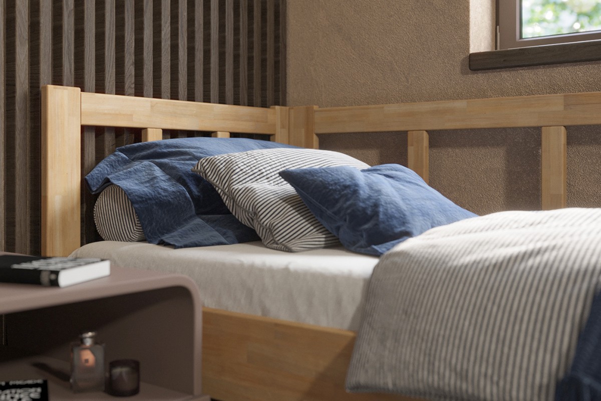 Pojedyncze narożne drewniane łóżko Bety, prawy róg, wersja BK1, 120x200 cm