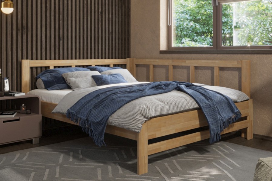 Narożne łóżko drewniane Bety, prawy róg, wersja BK1, 180x200 cm