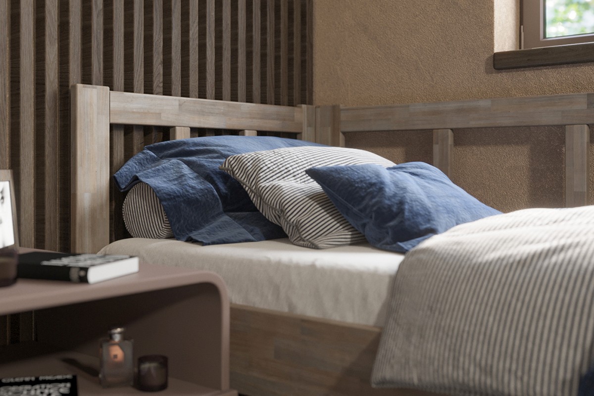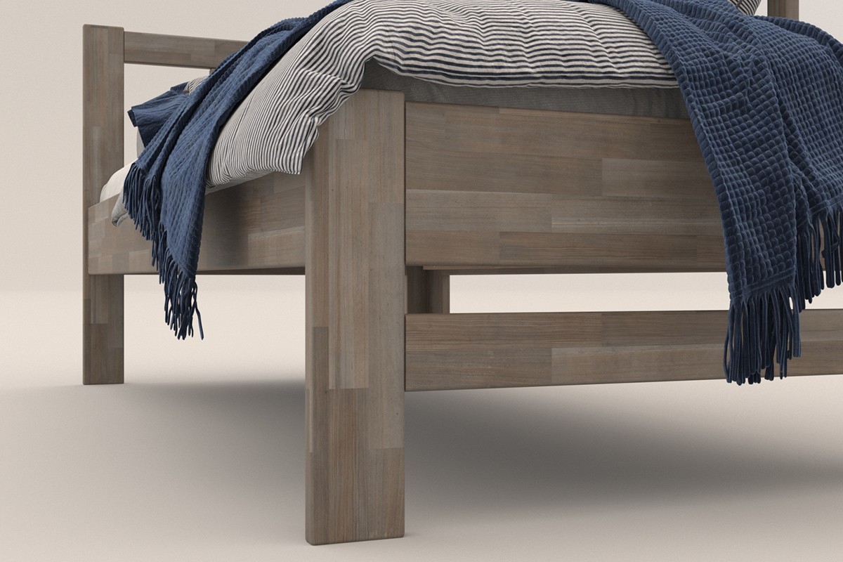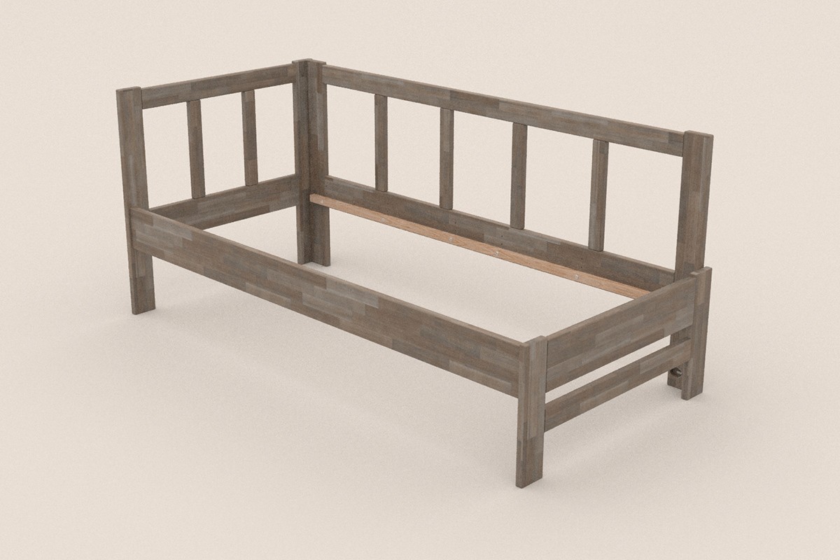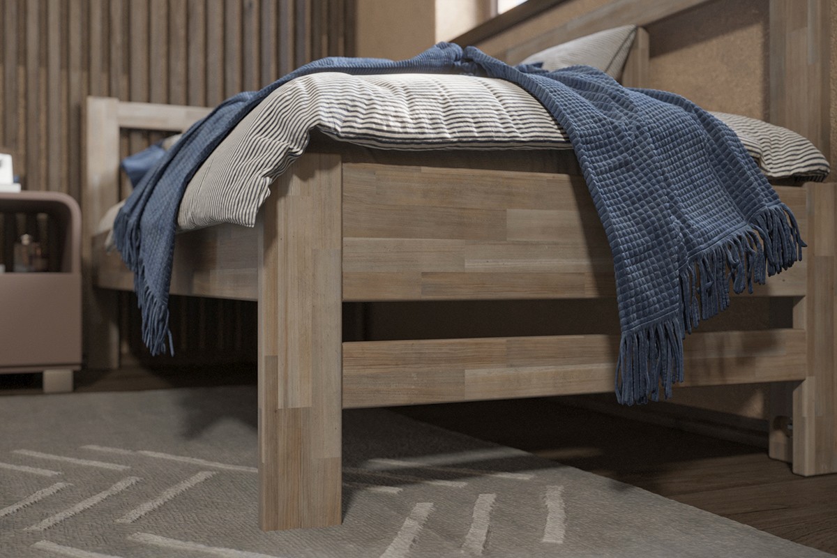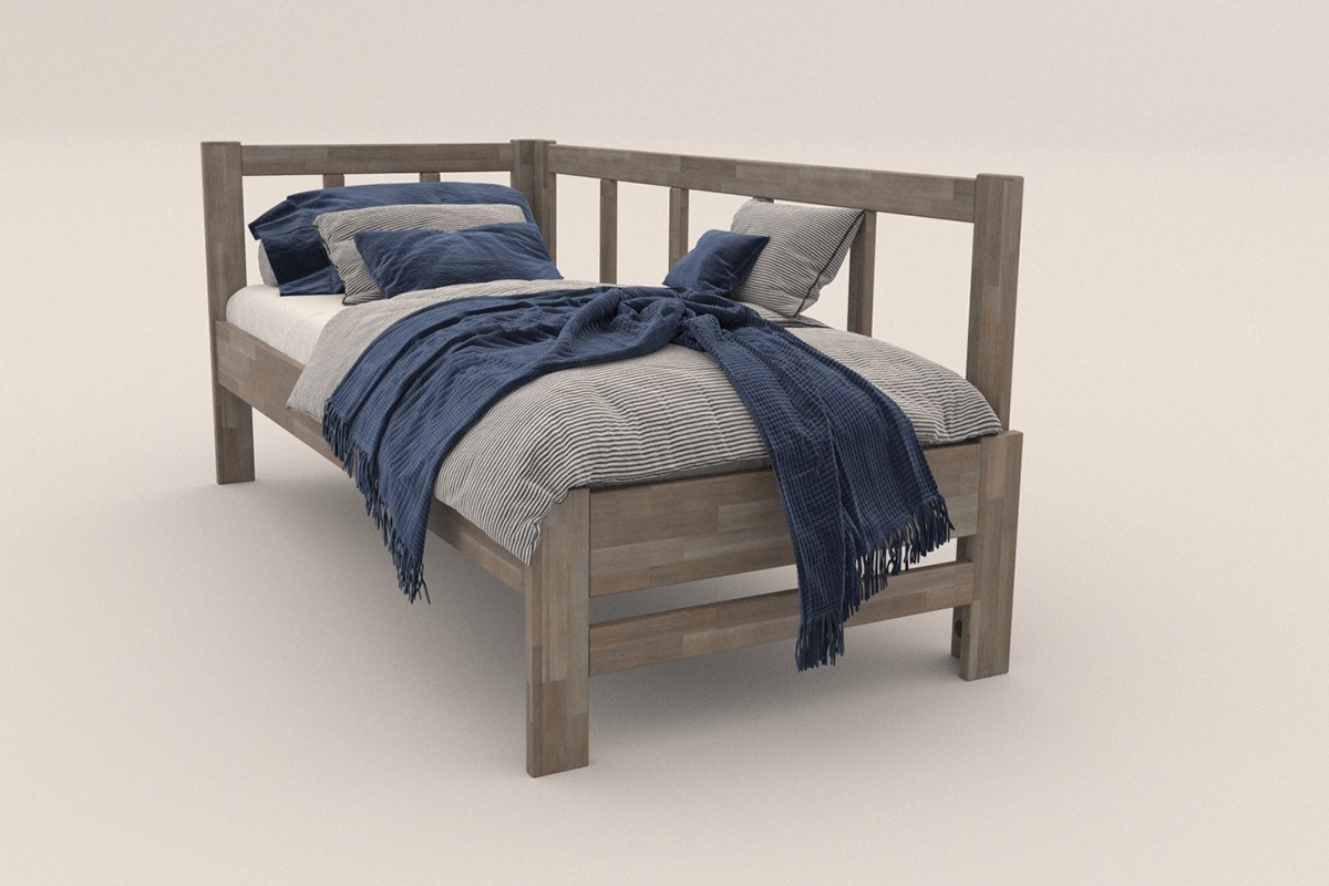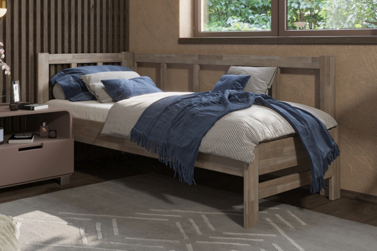 Pojedyncze narożne drewniane łóżko Bety, prawy róg, wersja BO105, 90x200 cm