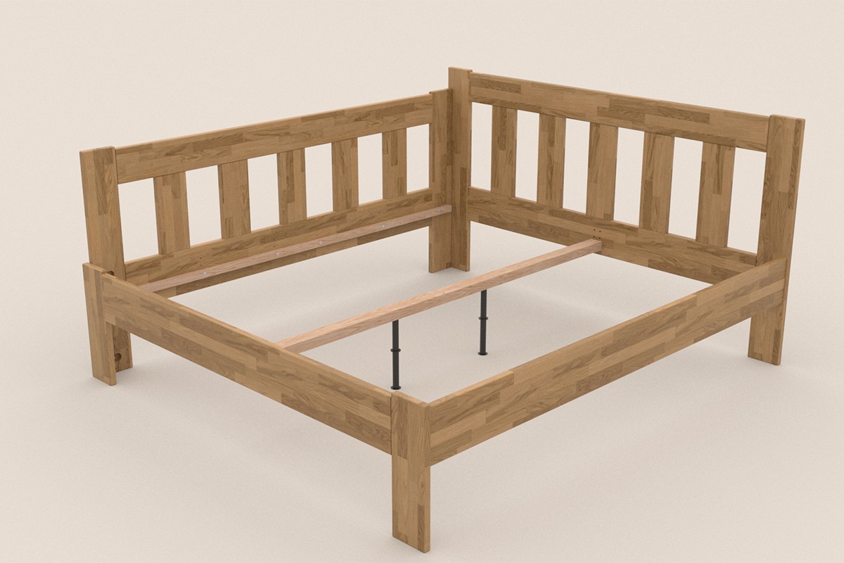 Narożne łóżko drewniane Utena, lewy róg, wersja D1, 180x200 cm