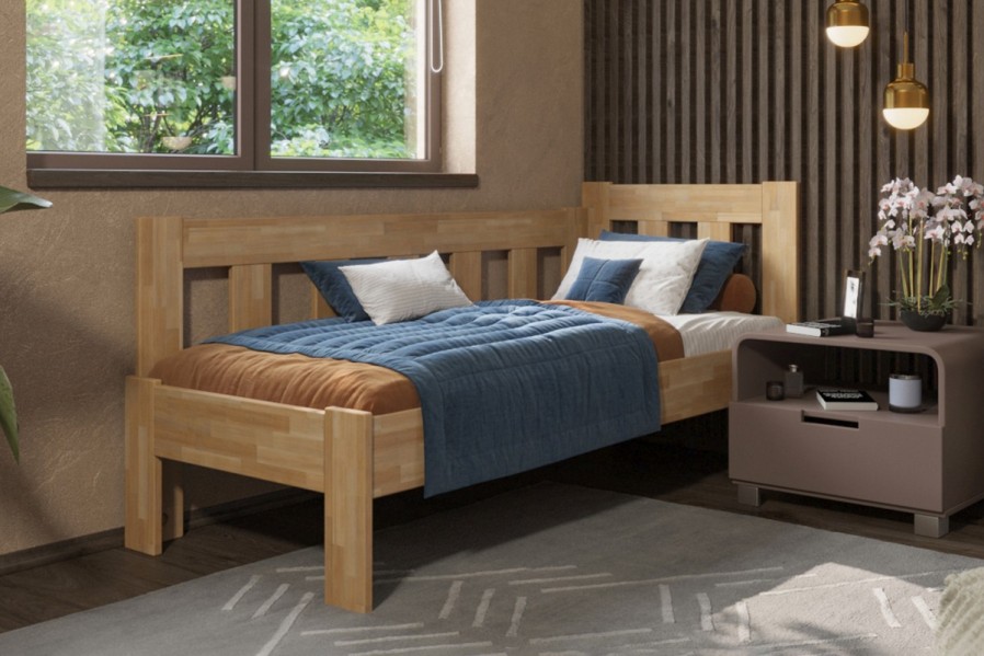 Narożne łóżko drewniane Utena, lewy róg, wersja BK1, 90x200 cm
