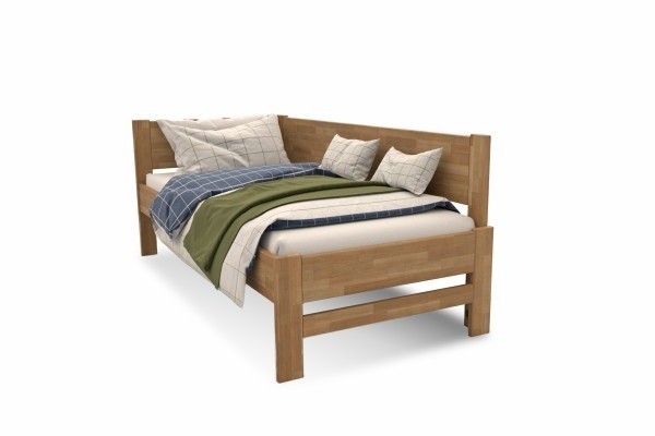 Pojedyncze narożne drewniane łóżko Emily, lewy róg, wersja D1, 90x200 cm