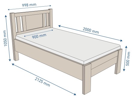 Drewniane łóżko z naturalnego buku Sion H1, BK2, 90x200 cm