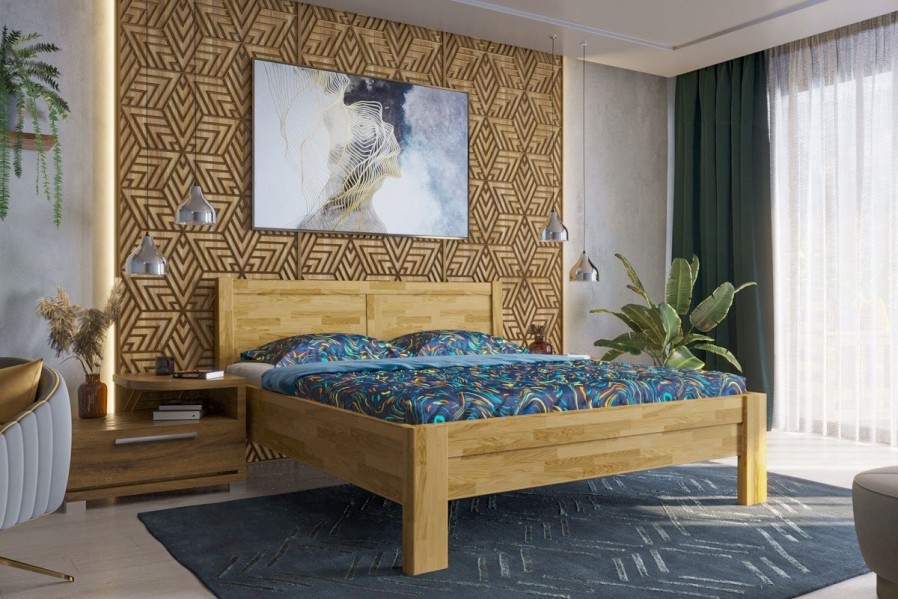 Łóżko z litego drewna - dąb naturalny Sion H3, D1, 140x200 cm