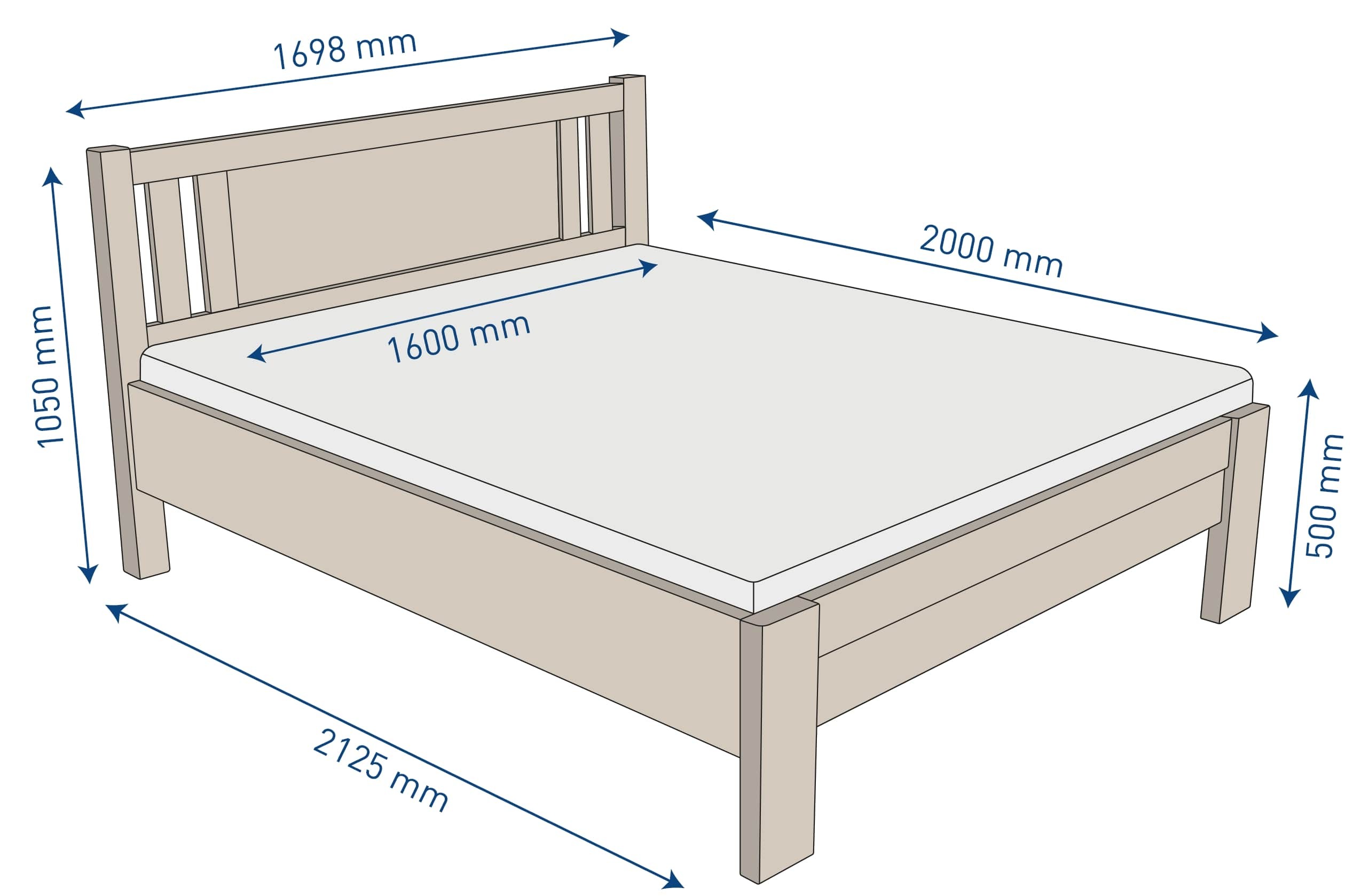 Łóżko z litego drewna, dąb Sion K2, D1, 160x200 cm