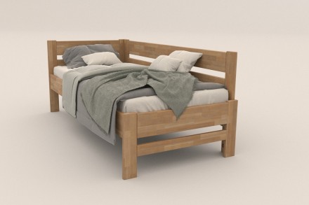 Pojedyncze narożne drewniane łóżko Wanda, prawy róg, wersja BK1, 120x200 cm