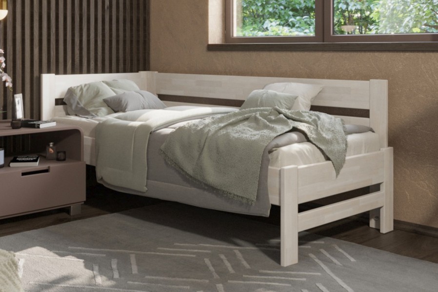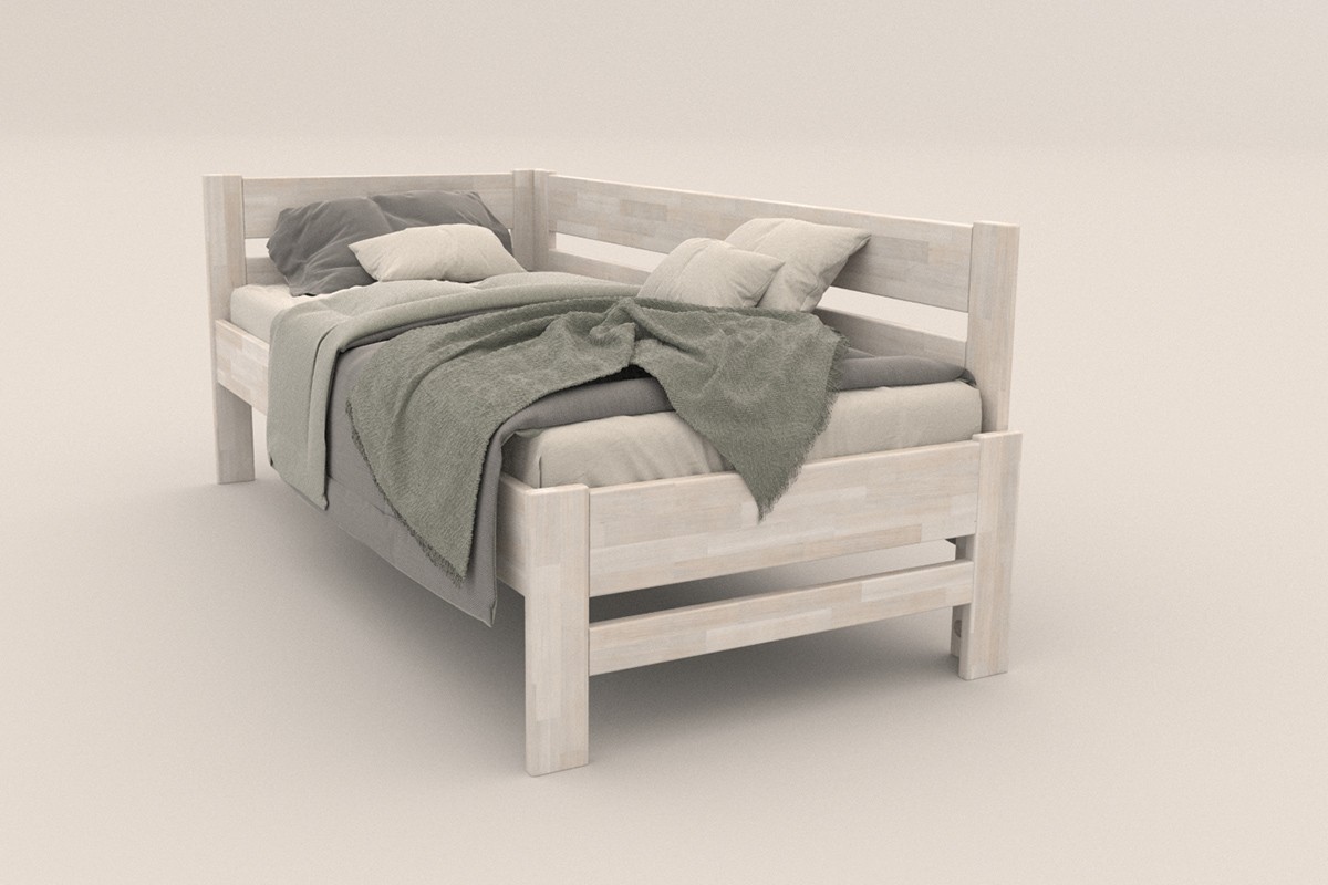 Pojedyncze narożne drewniane łóżko Wanda, prawy róg, wersja BO102, 120x200 cm
