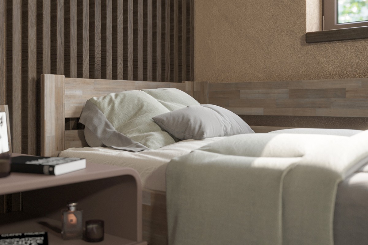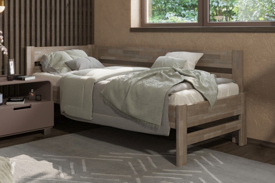 Pojedyncze narożne drewniane łóżko Wanda, prawy róg, wersja BO105, 120x200 cm