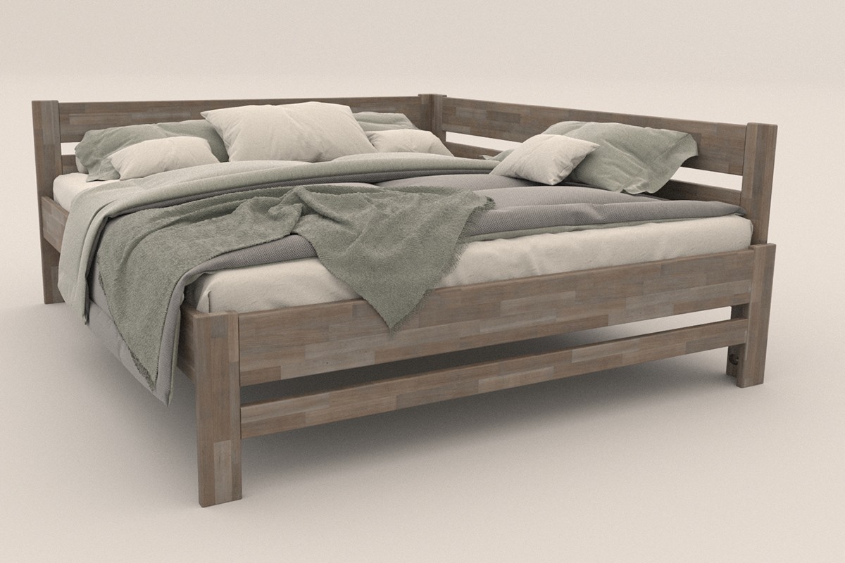 Narożne łóżko drewniane Wanda, prawy róg, wersja BO105, 160x200 cm