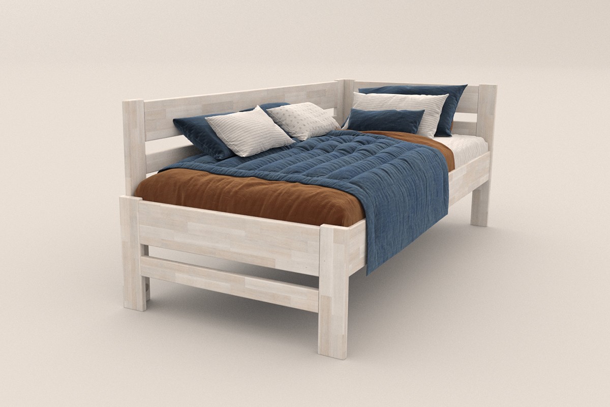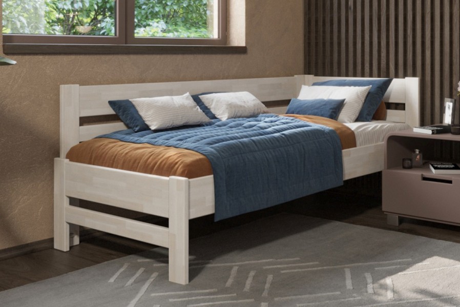 Pojedyncze narożne drewniane łóżko Wanda, lewy róg, wersja BO102, 90x200 cm