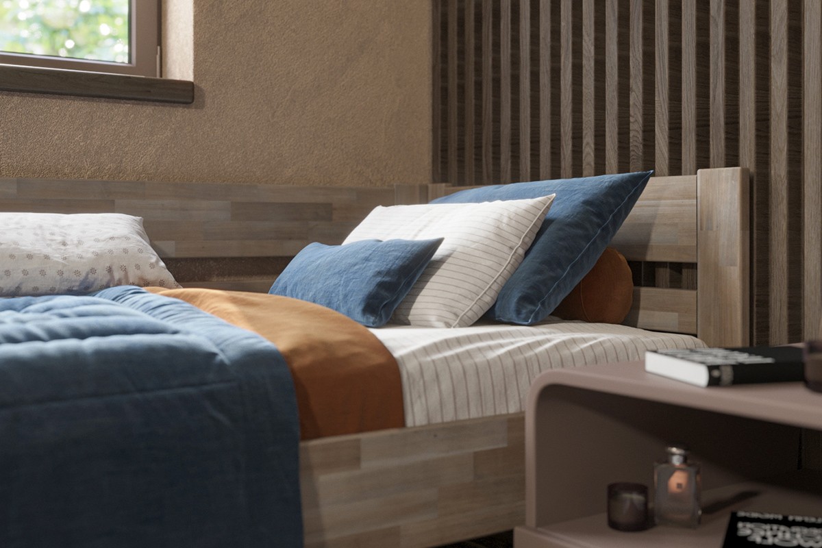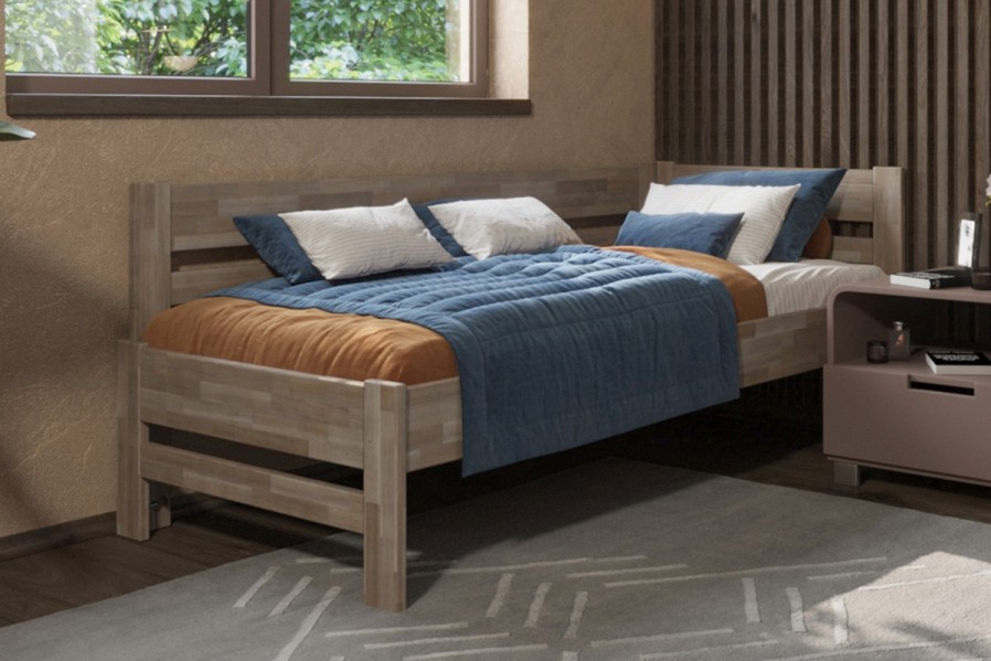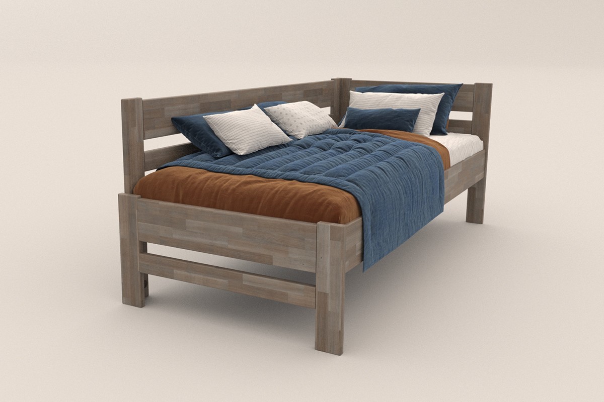 Pojedyncze narożne drewniane łóżko Wanda, lewy róg, wersja BO105, 90x200 cm