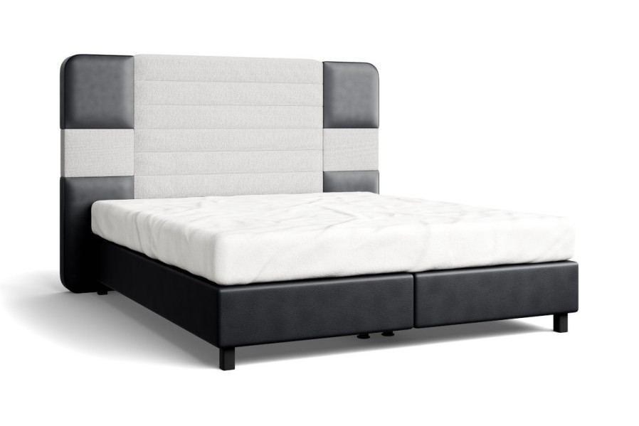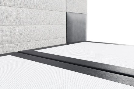 Wezgłowie modelu Majestic przyciąga wzrok od pierwszego spojrzenia. Zastosowanie dwóch kontrastujących barw oraz geometrycznych form nadaje mu wyrazistego, luksusowego charakteru. To właśnie ono podkreśla nowoczesny styl całego mebla.