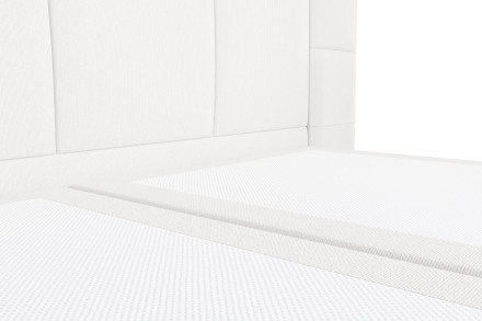 Wezgłowie łóżka Plaza od razu przykuwa wzrok. Główna część składa się z jasnej tkaniny z regularnym pikowaniem, dzielącym wezgłowie na prostokąty o różnych rozmiarach. Spójność geometrycznych linii przełamuje na górze zaokrąglony, ciemniejszy pas. Kontrast kolorów i kształtów nadaje wezgłowiu oryginalny i pomysłowy charakter.