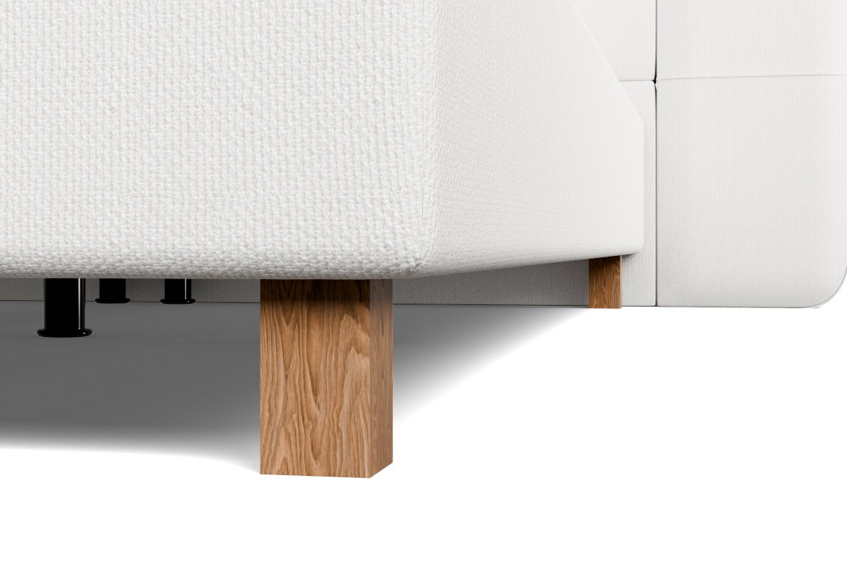 Łóżko Plaza przyciąga uwagę swoim niebanalnym podejściem. Jasne obicie subtelnie wprowadza atmosferę relaksu, podczas gdy ciemniejszy pas na górze wezgłowia oraz drewniane nogi wyraźnie akcentują jego charakter. Całość intryguje—zauważysz, że łóżko Plaza emanuje dominacją i elegancją jednocześnie.