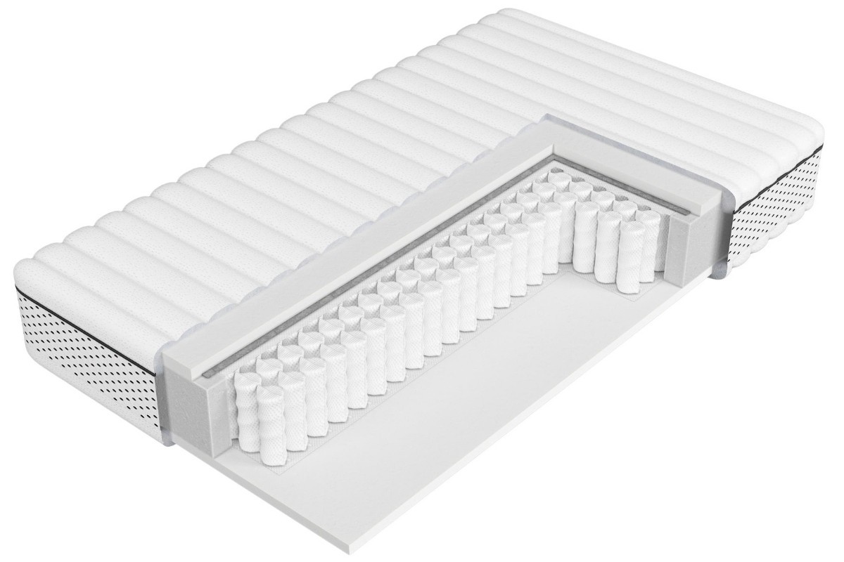 Rdzeń materaca stanowi połączenie sprężyn kieszeniowych i piany wysokoelastycznej.